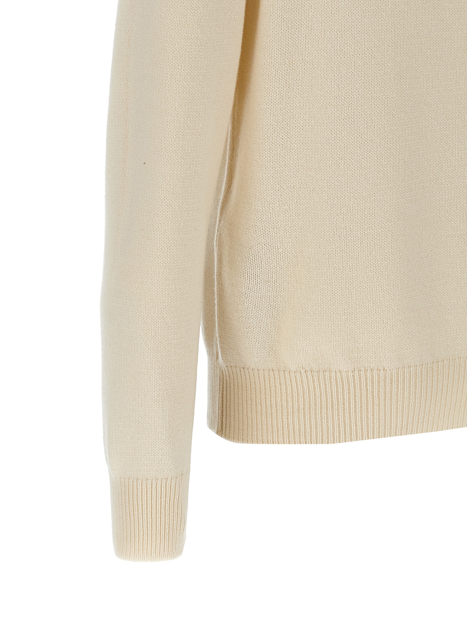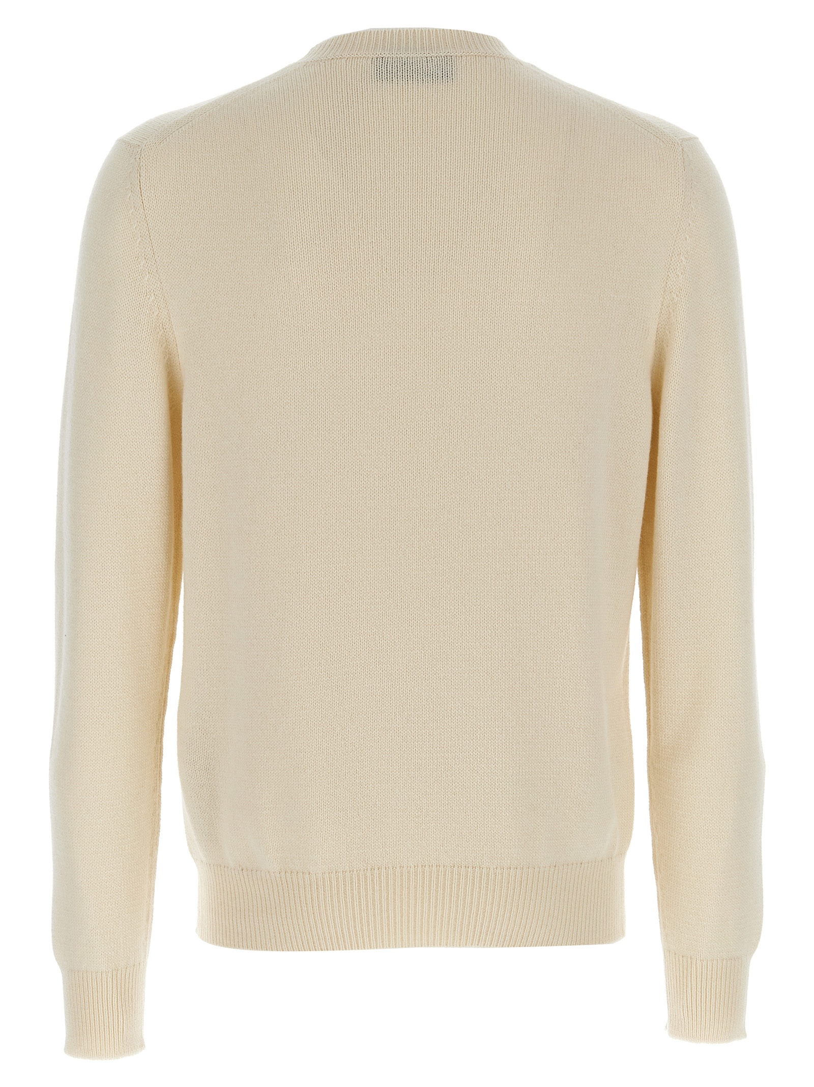 Wool and cashmere blend sweater with contrast front logo embroidery, crew neck, long cuffed sleeves and dropped shoulders.