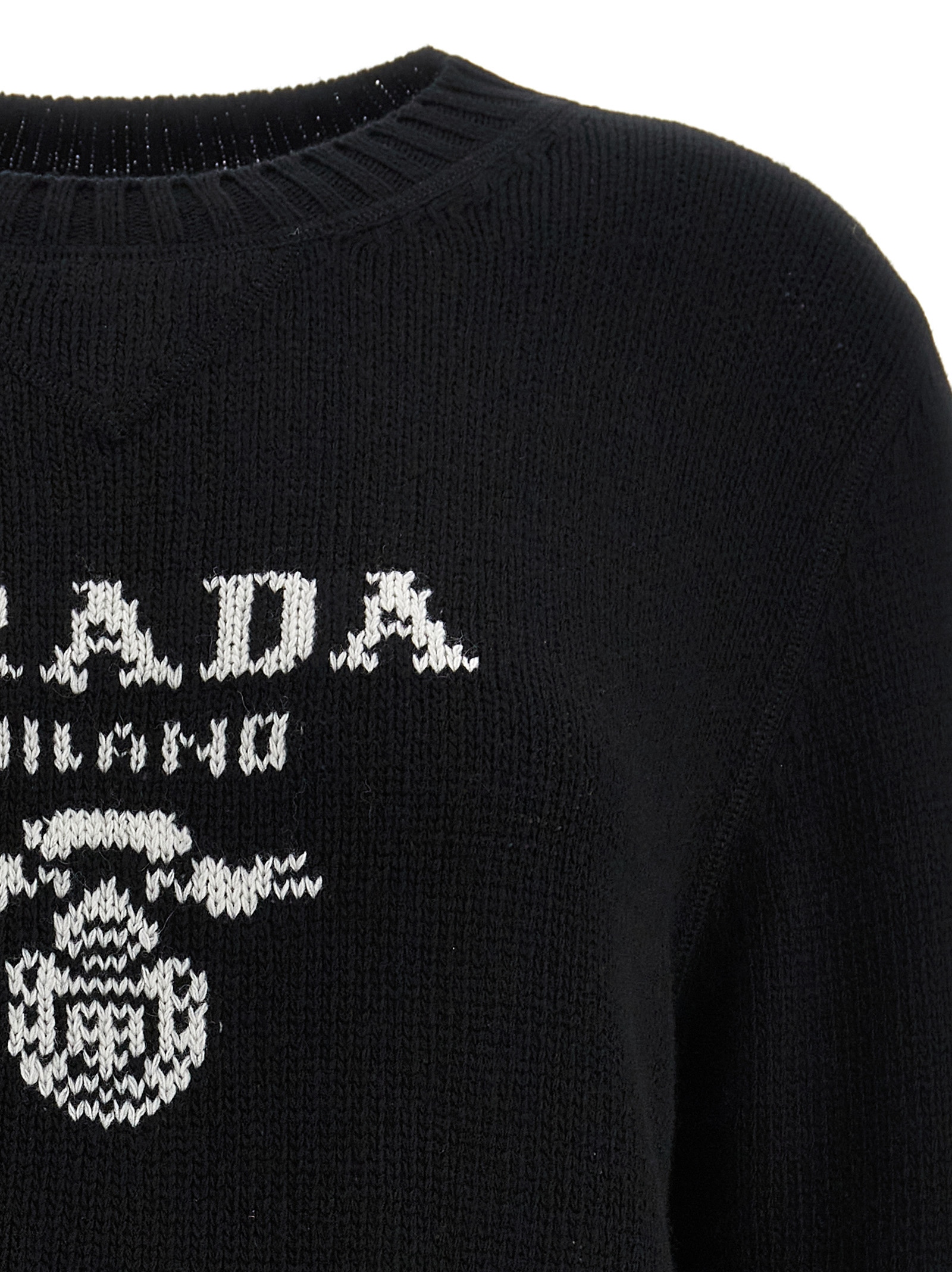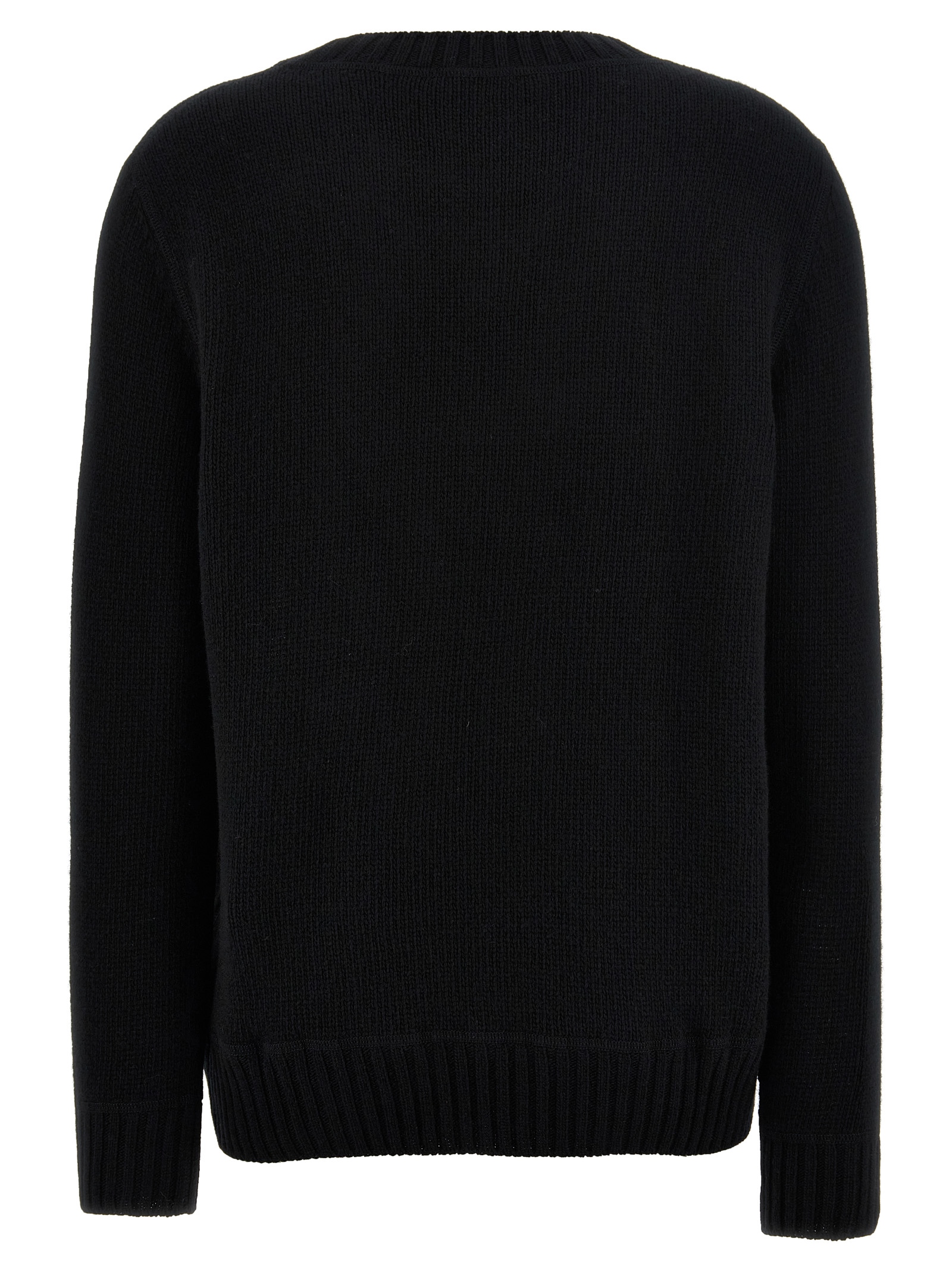 Wool and cashmere sweater with front logo intarsia, crew neck, long sleeves.