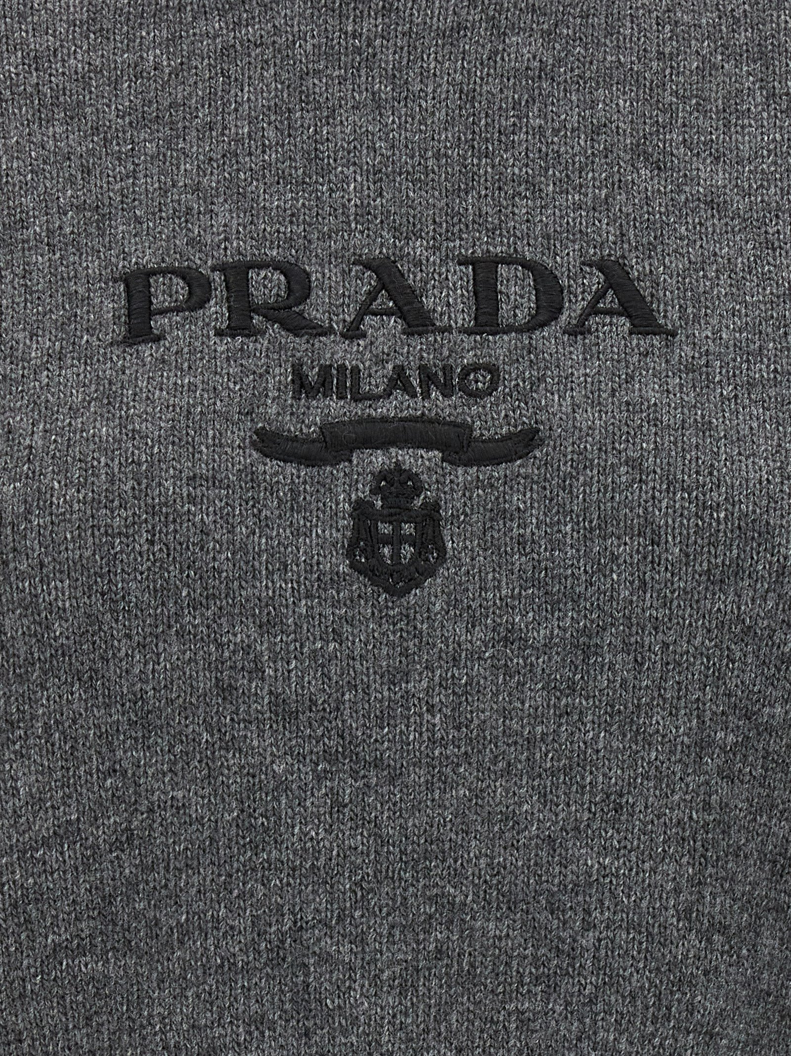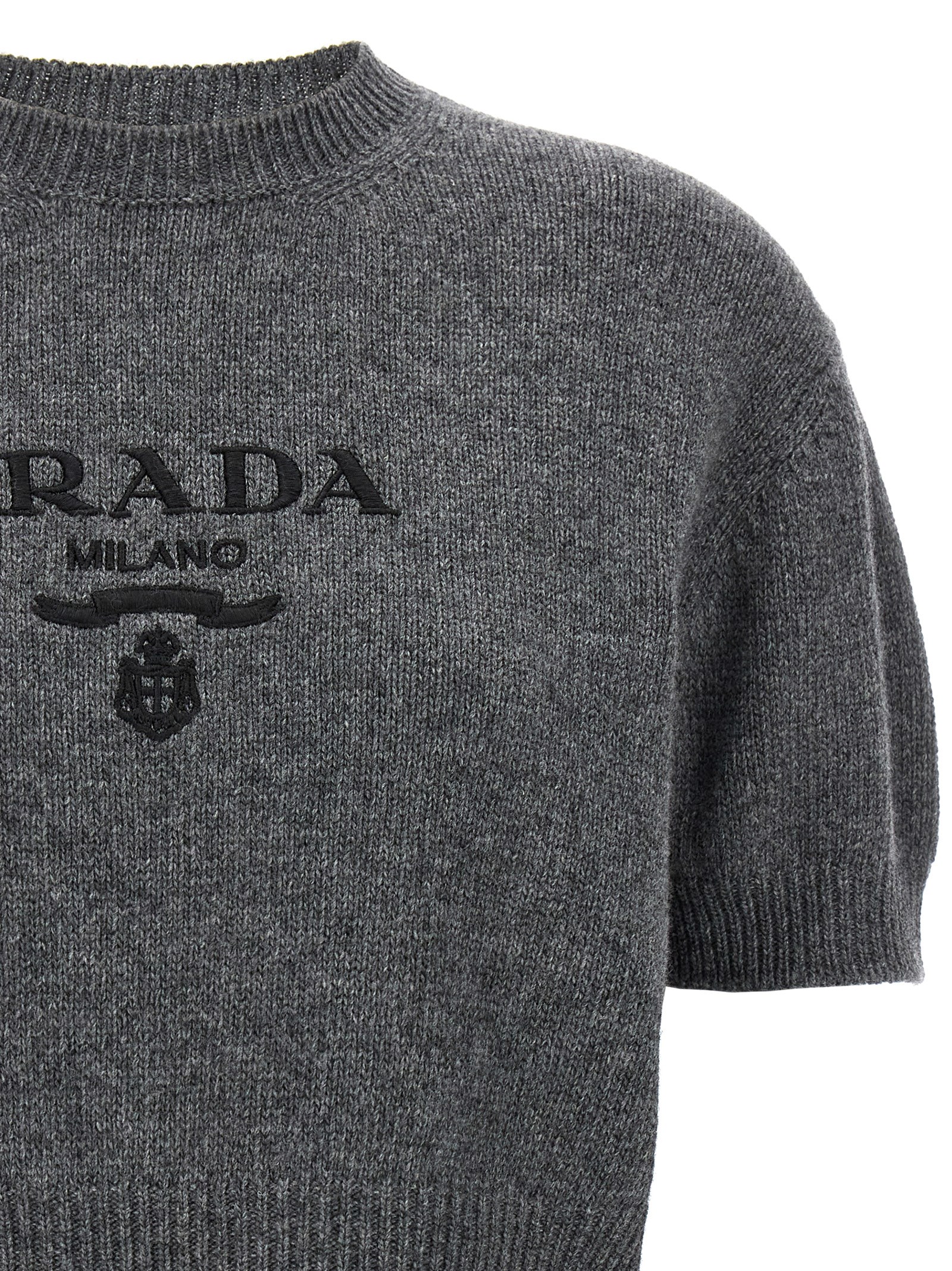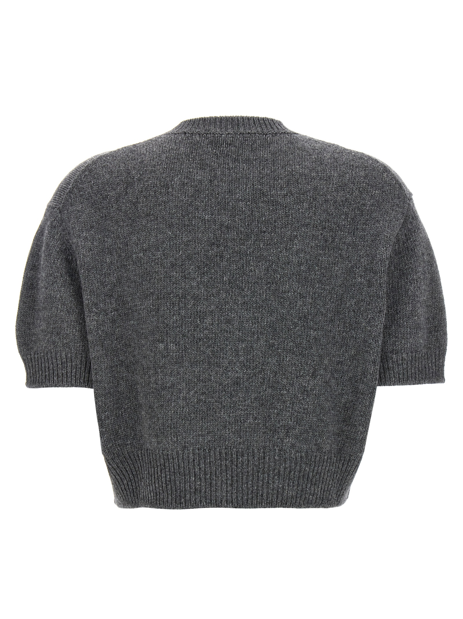 Wool and cachemire blend sweater with crewneck and short sleeves and logo embroidered at the front.