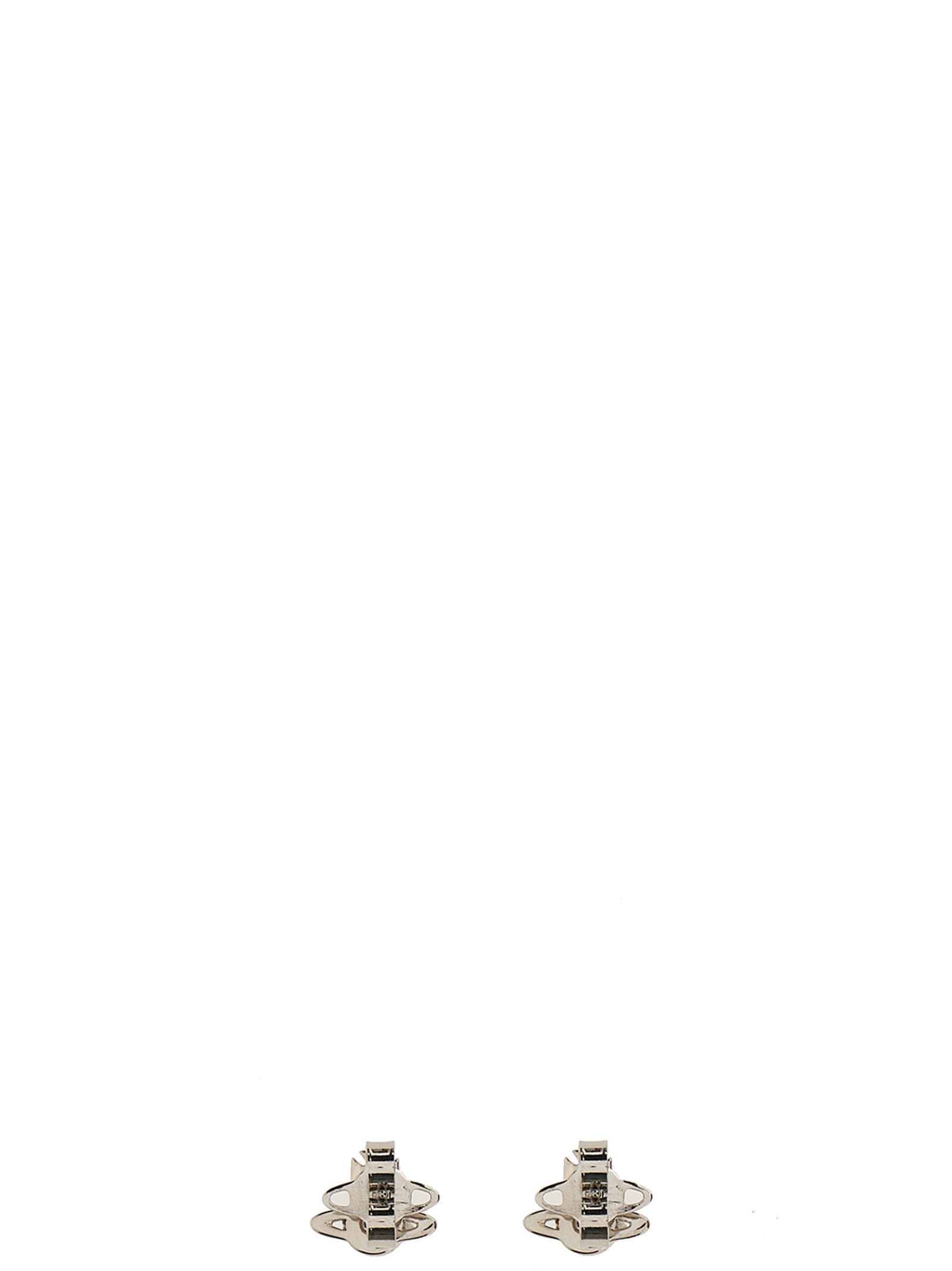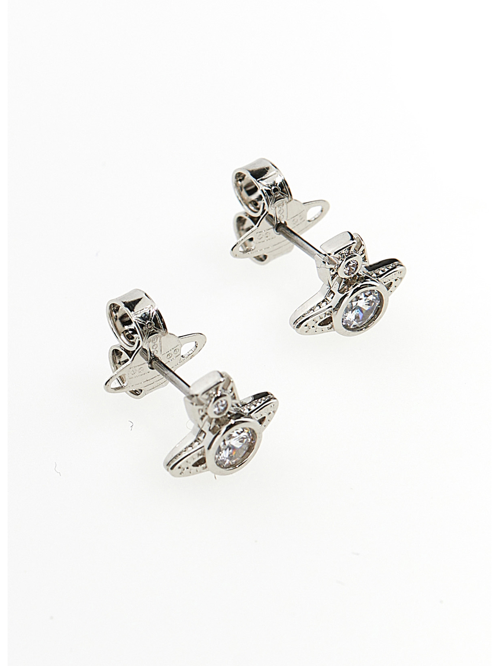 ‘London Orb’ earrings in silver metal with logo and crystal detail. THIS ITEM CANNOT BE RETURNED