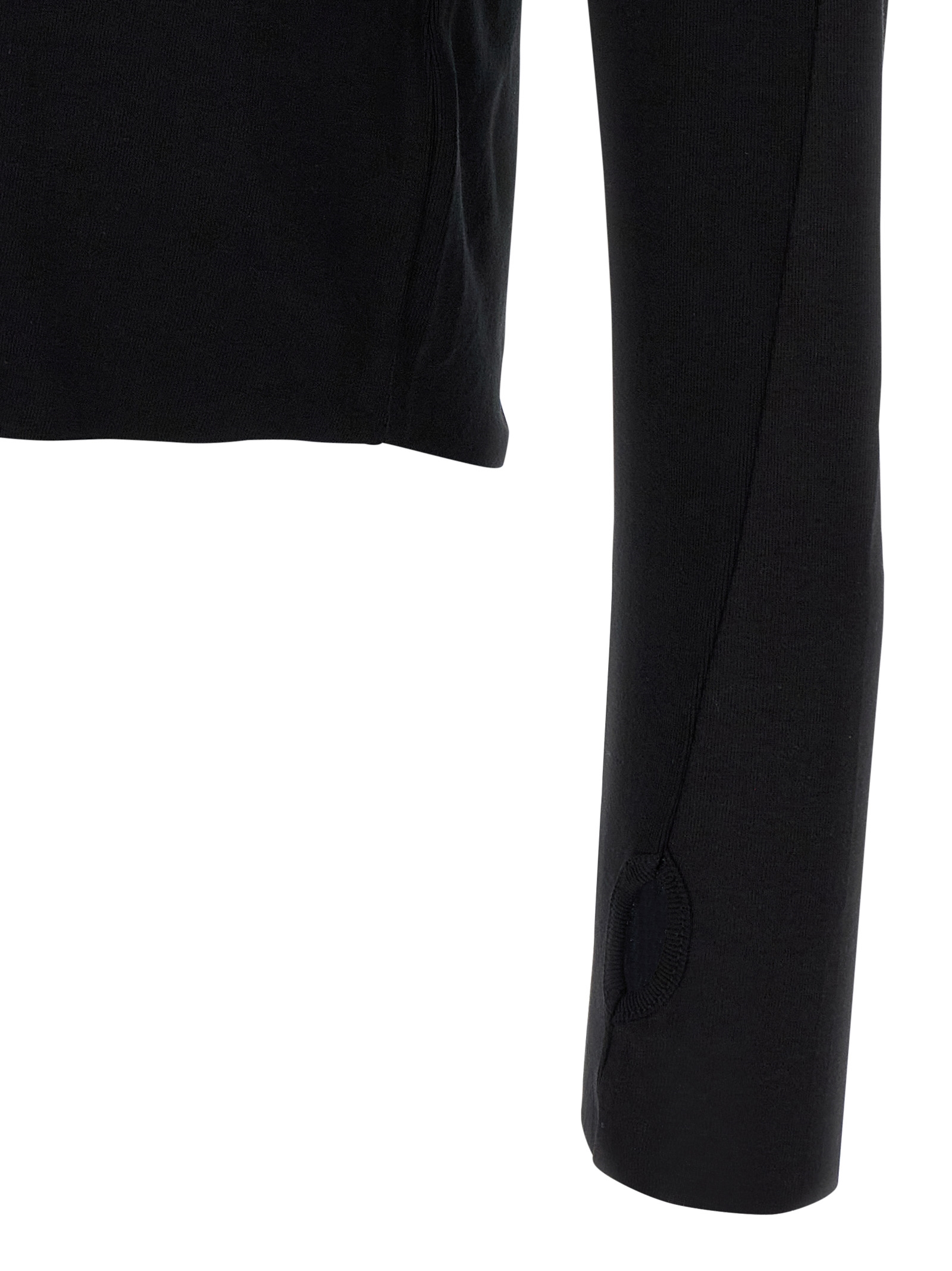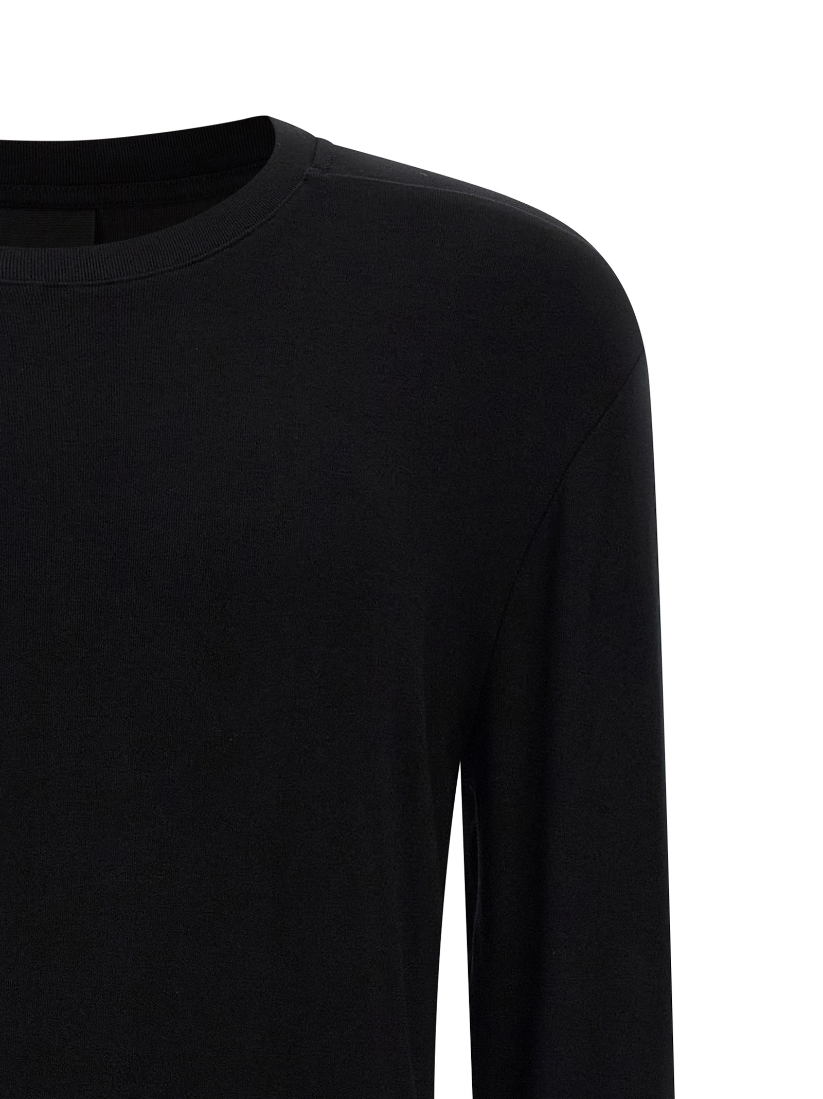 Jersey t-shirt, crew neck, raw cut on the hem, long sleeves.