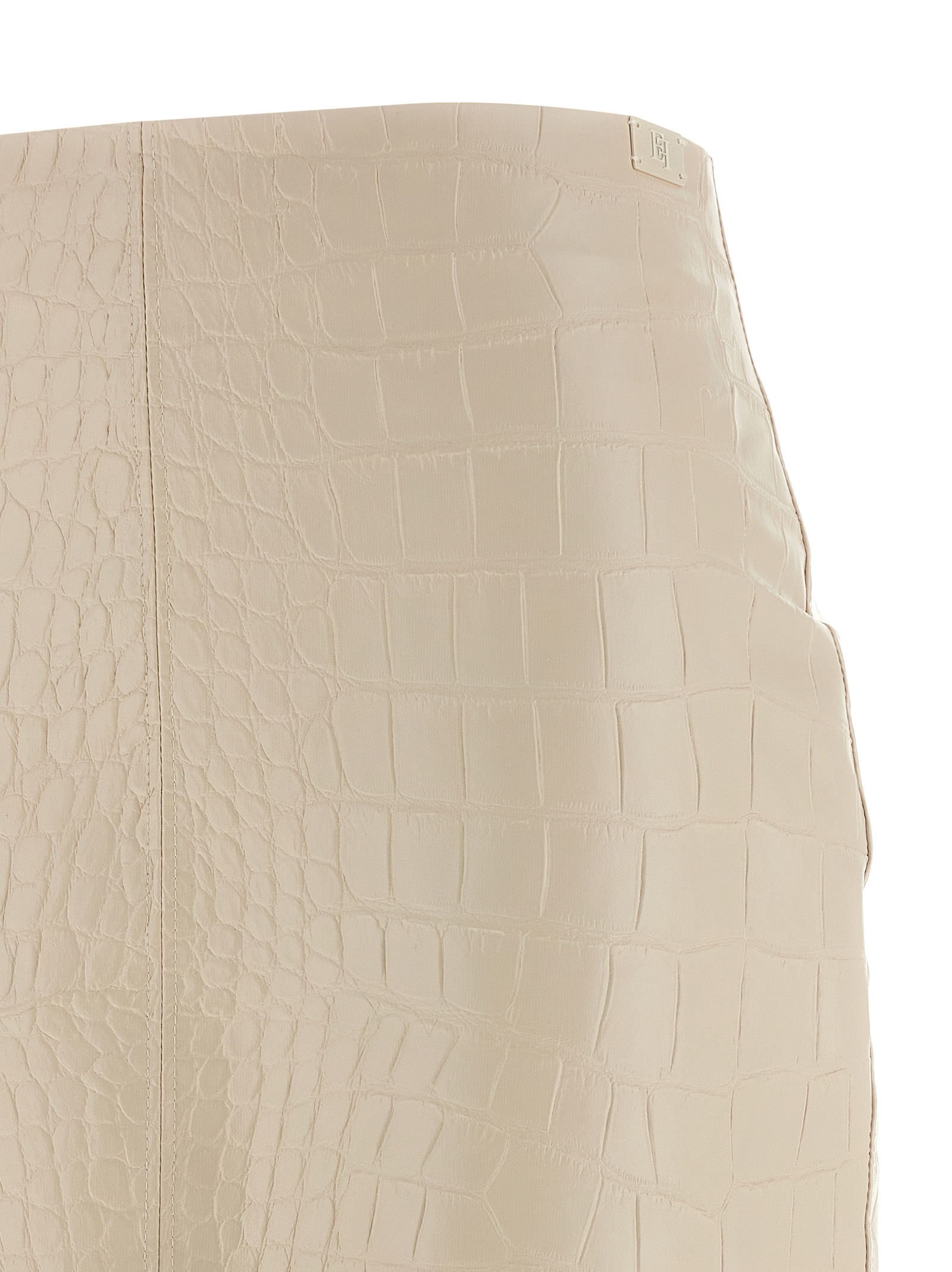 Midi skirt in croc print leather-effect fabric, longuette model with front zip, back zip closure, lining.