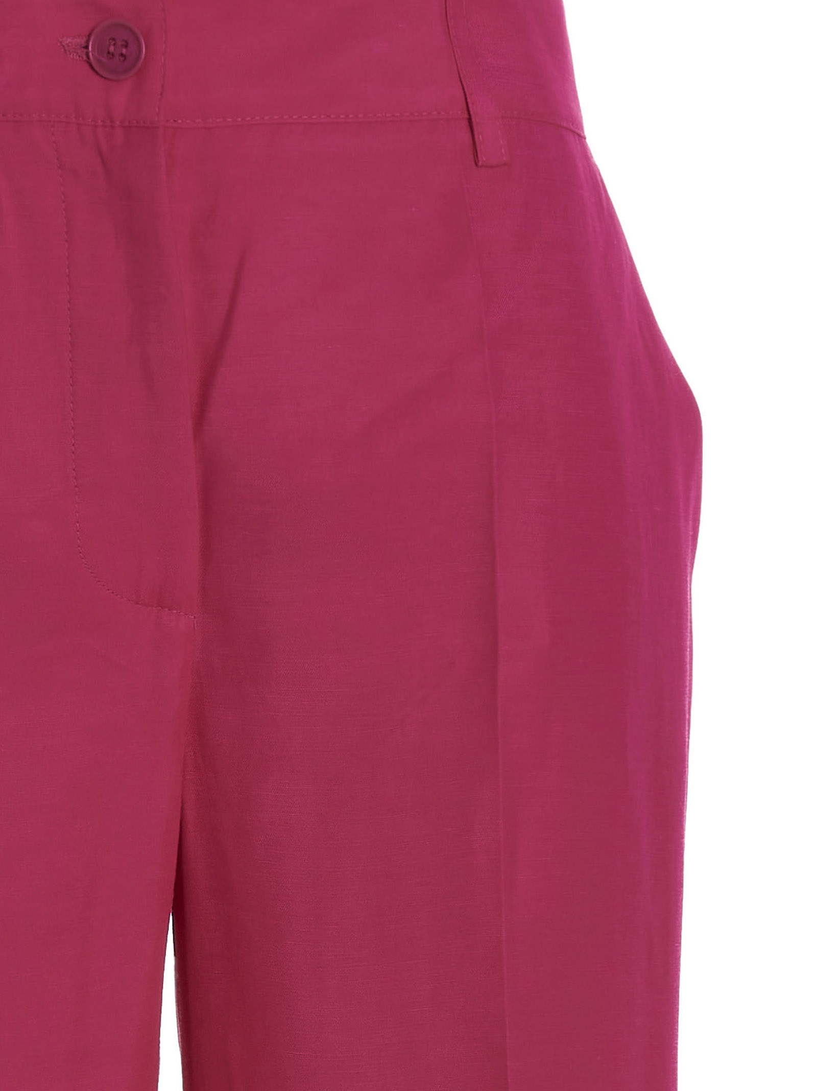 Viscose and linen pants with loose leg with central crease, zip and button closure, pockets.