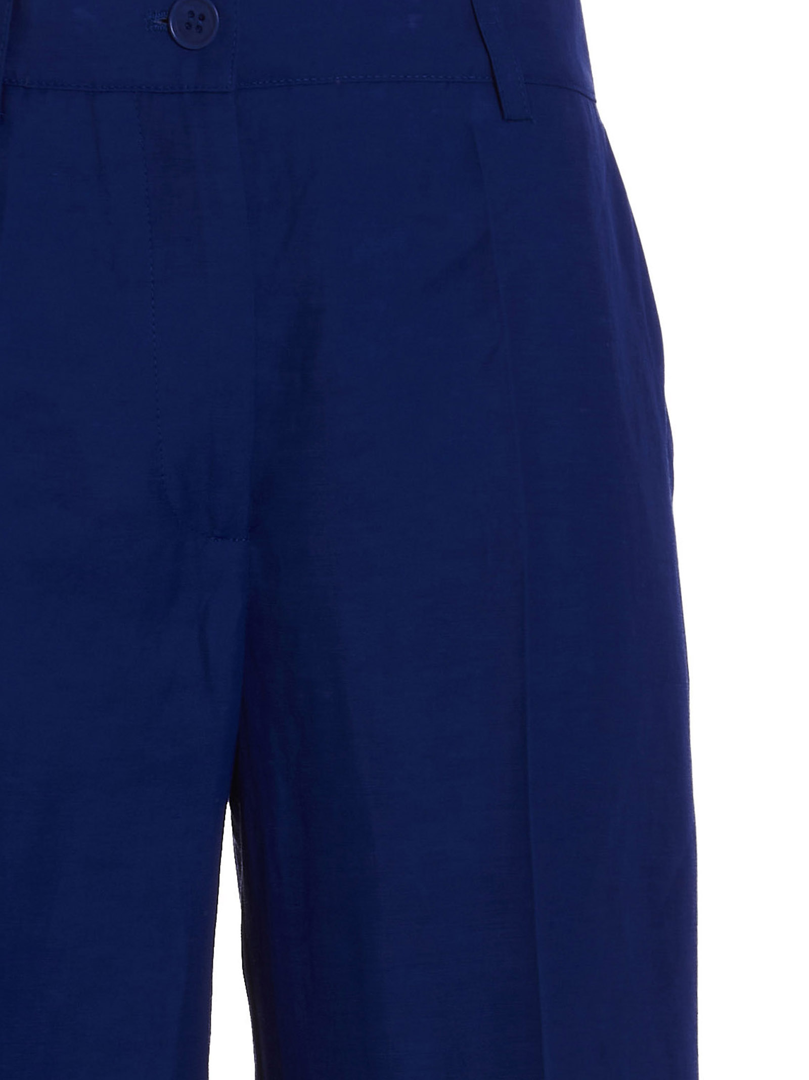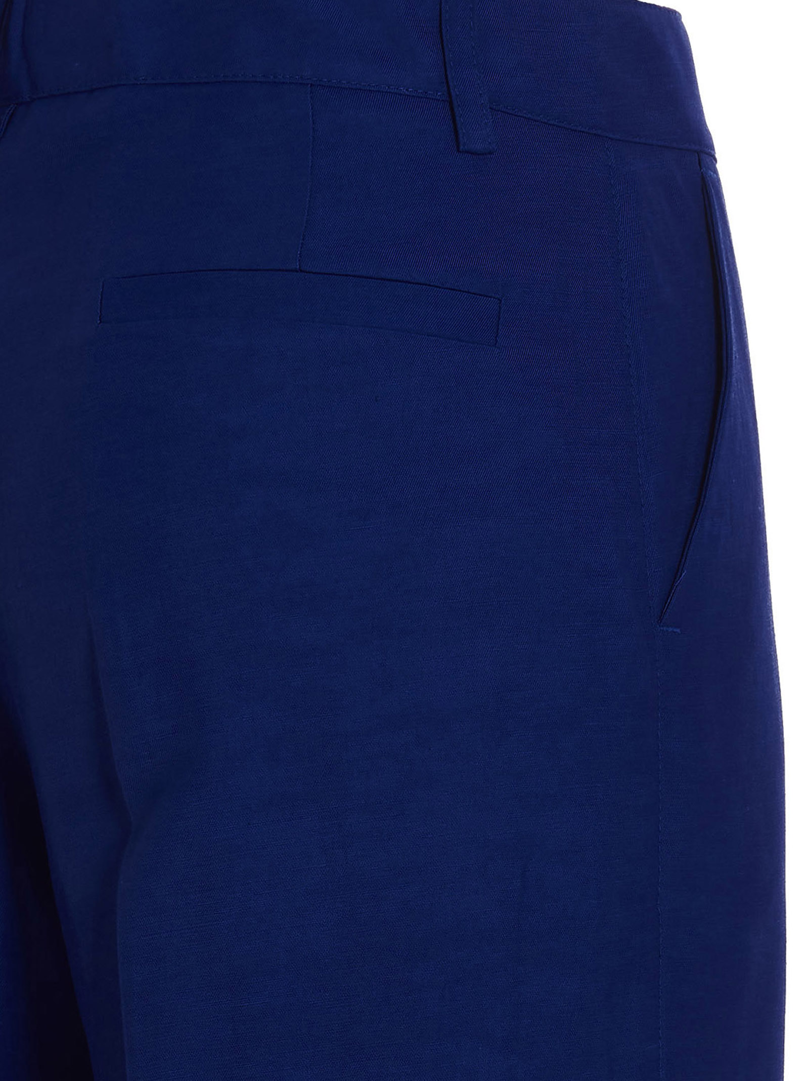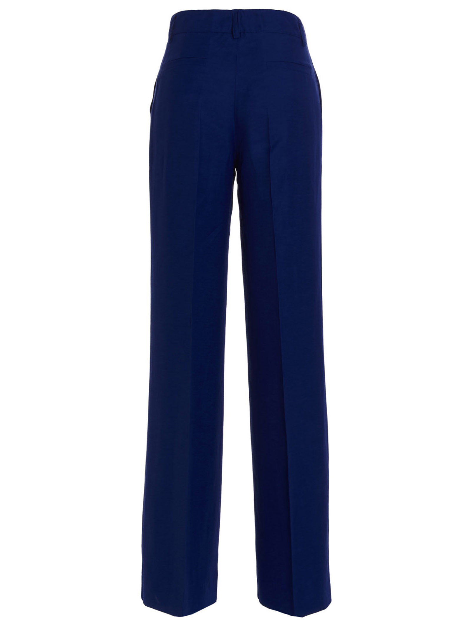 Viscose and linen pants with loose leg with central crease, zip and button closure, pockets.