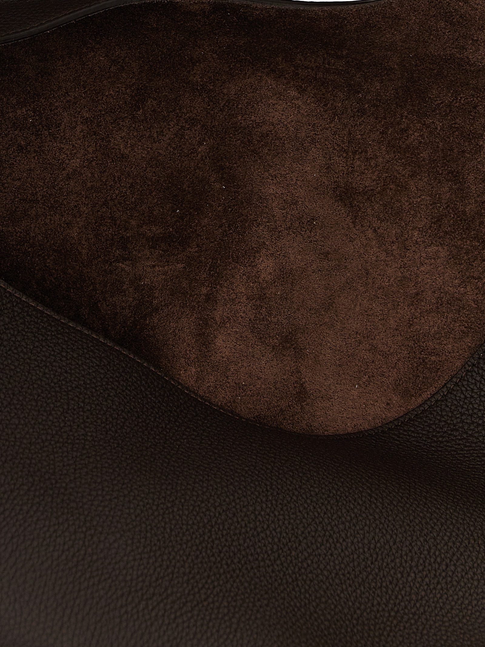 ‘Lotus Medium’ shopping bag in garnet leather, fixed handle, front embossed logo, removable matching clutch.