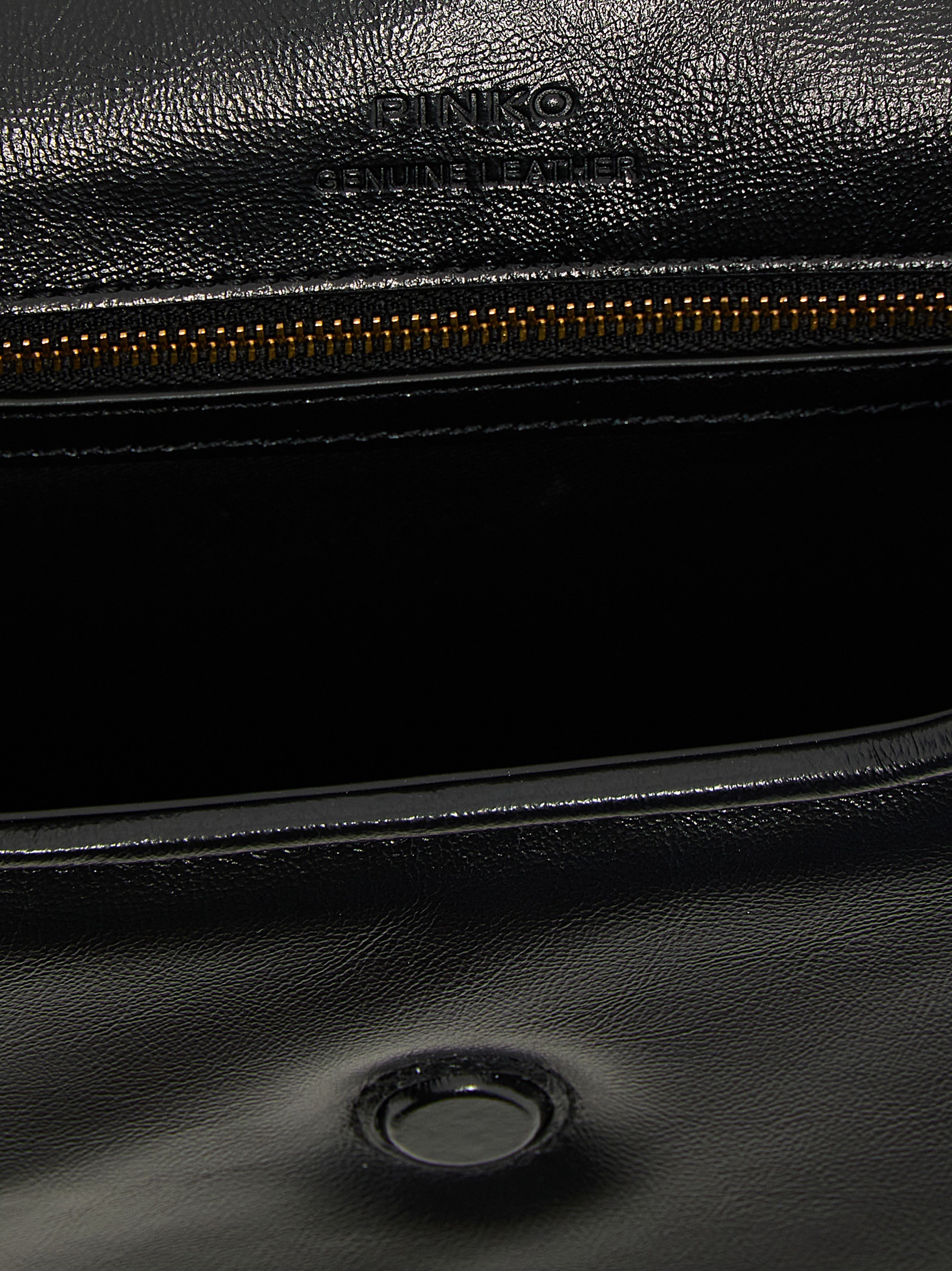 ‘Love Bag Box’ shoulder bag in slightly quilted nappa leather, square shape, cotton drill lining, magnetic flap closure with gold metal ‘Love Birds Diamond Cut’ buckle, adjustable shoulder strap.