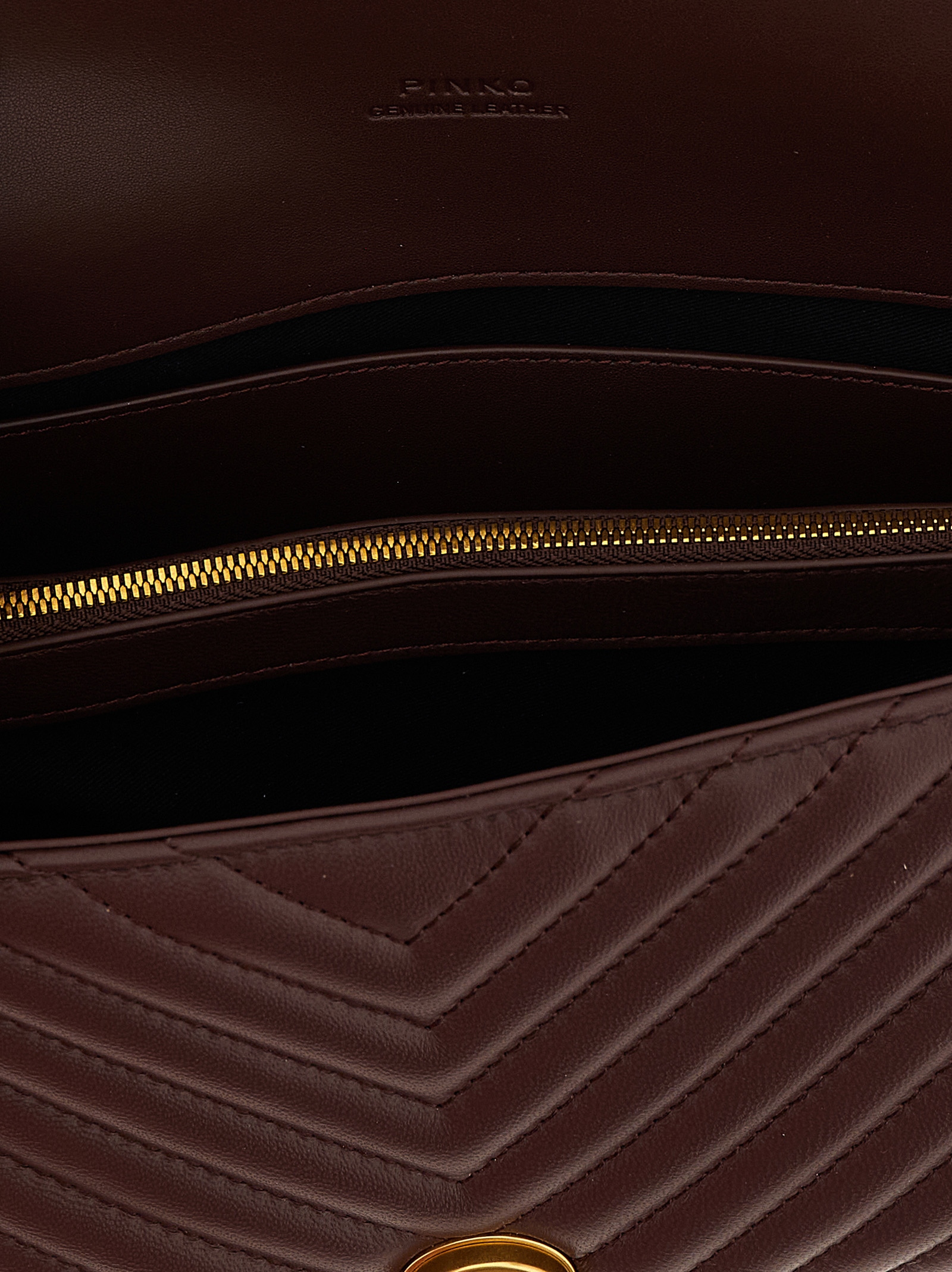 ‘Love Lady Puff Classic’ chevron leather handbag with flap closure with metal logo and removable chain shoulder strap.
