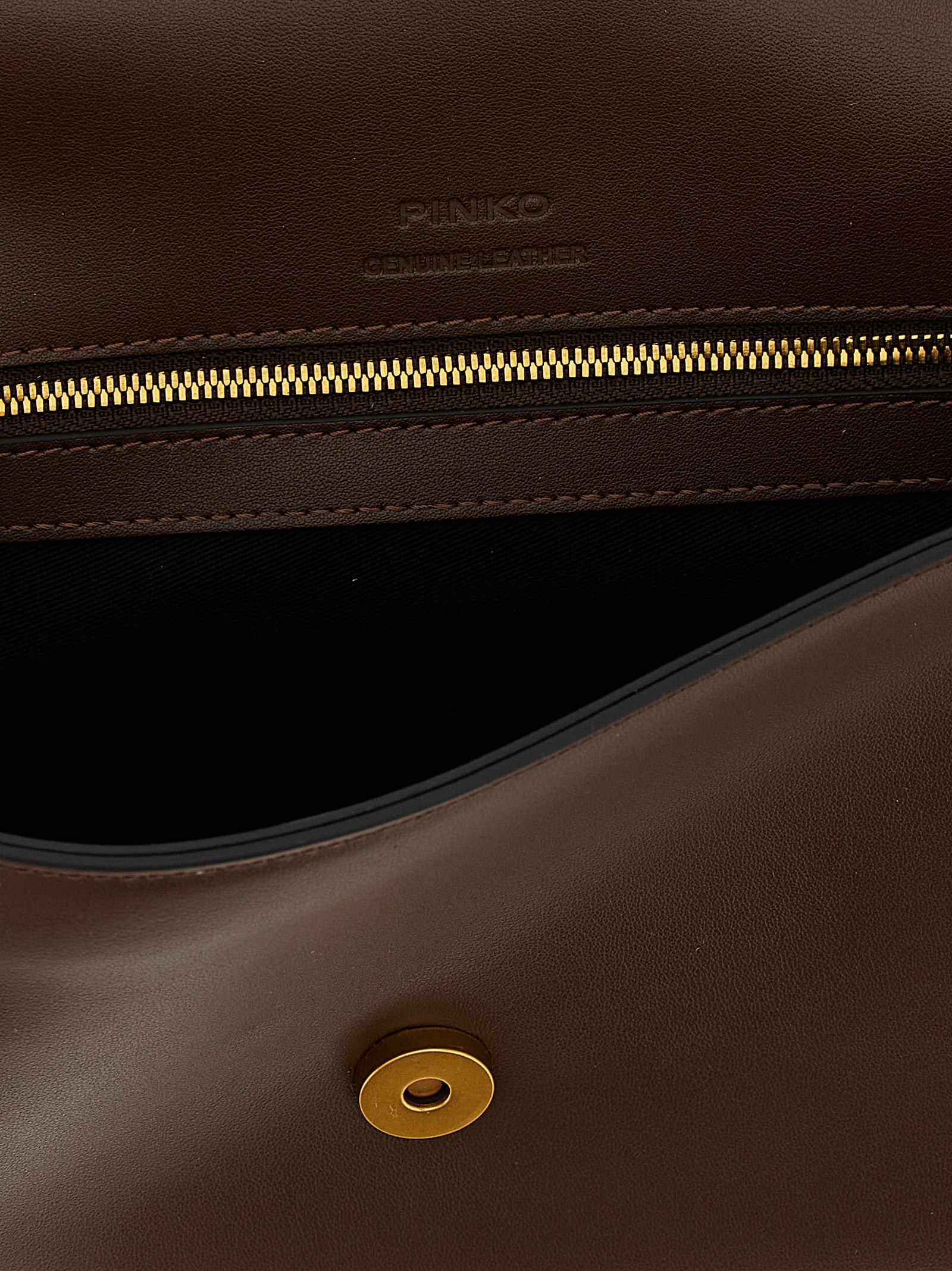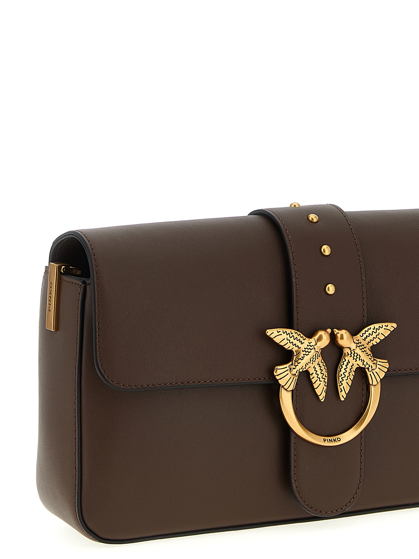 ‘Love One Classic’ leather crossbody bag, magnetic flap closure with front metal logo appliqué, removable shoulder strap.
