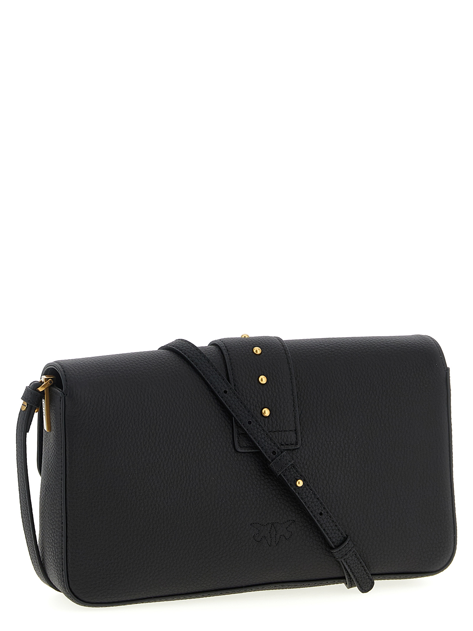 ‘Love One Classic’ grained leather crossbody bag, magnetic flap closure with front metal ‘Love Birds Diamond Cut’ logo and studs, adjustable shoulder strap.