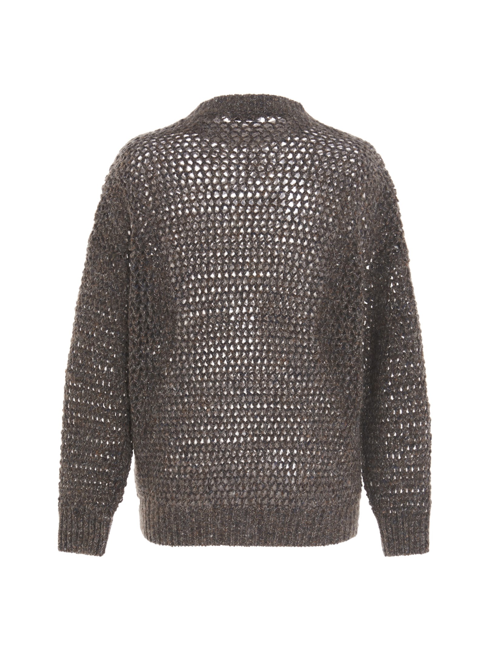 Wool openwork crew neck sweater with lurex inserts, long sleeves and comfort fit.