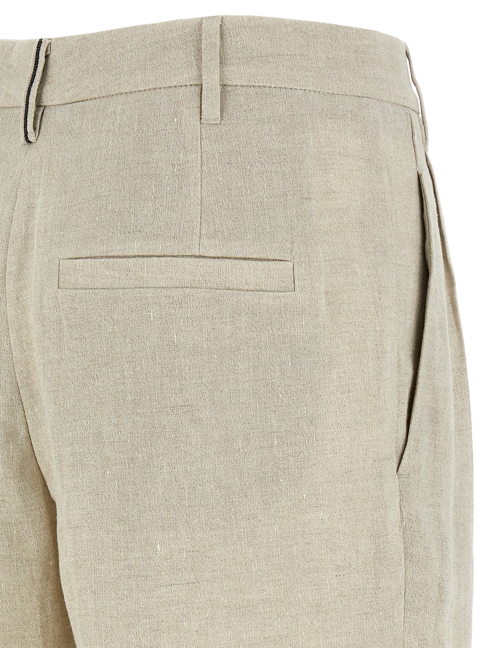 Lurex linen pants with pleats and back jewel detail, hook and button zip closure, pockets.