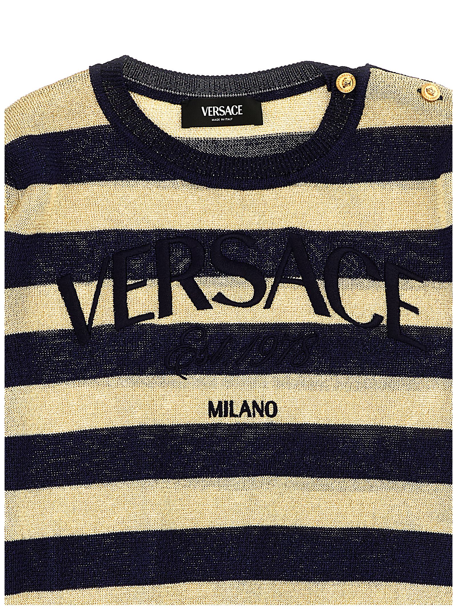 Lurex striped sweater with front embroidered logo, crew neck, long cuffed sleeves.