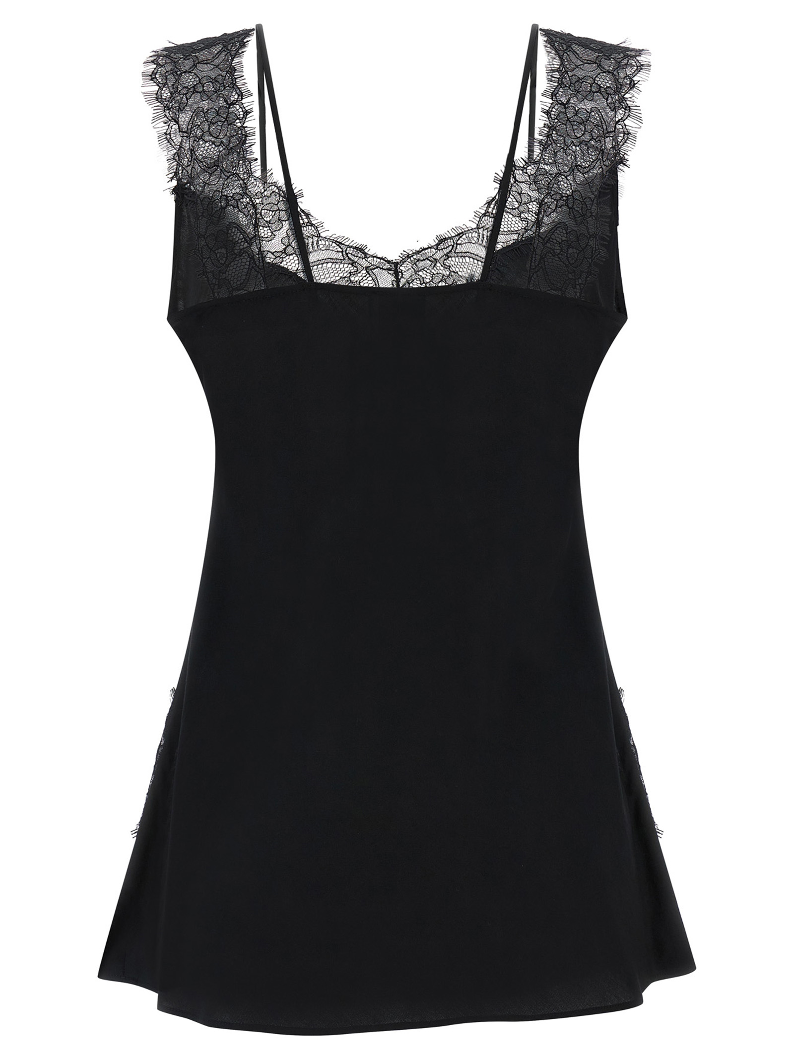 ‘Lydia’ viscose twill top with tone-on-tone lace inserts, V-neck, double shoulder strap.