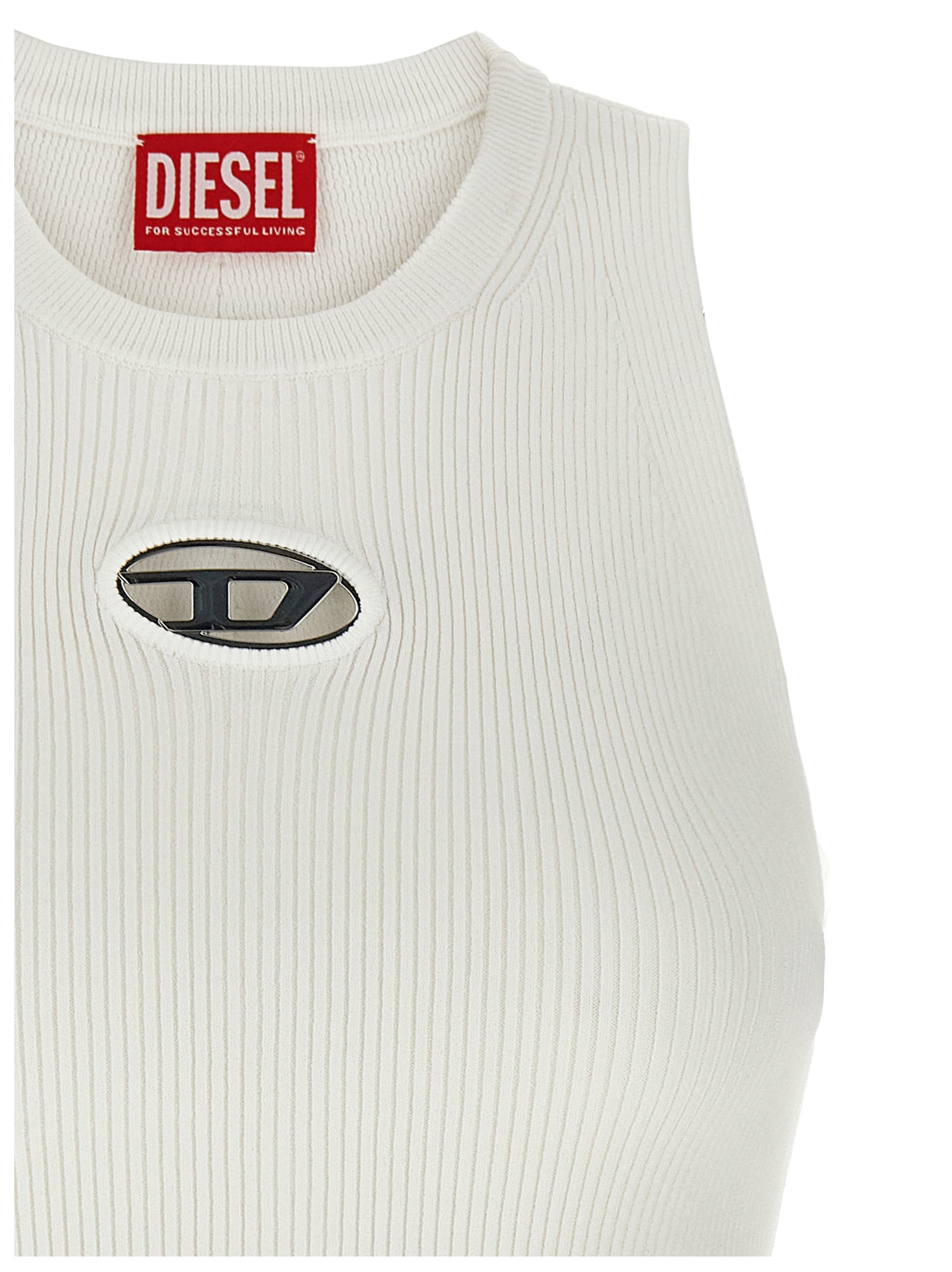 ‘M-Caddix-Top’ ribbed knit tank top with crew neck, cut-out detail with Oval D metal logo on the front.