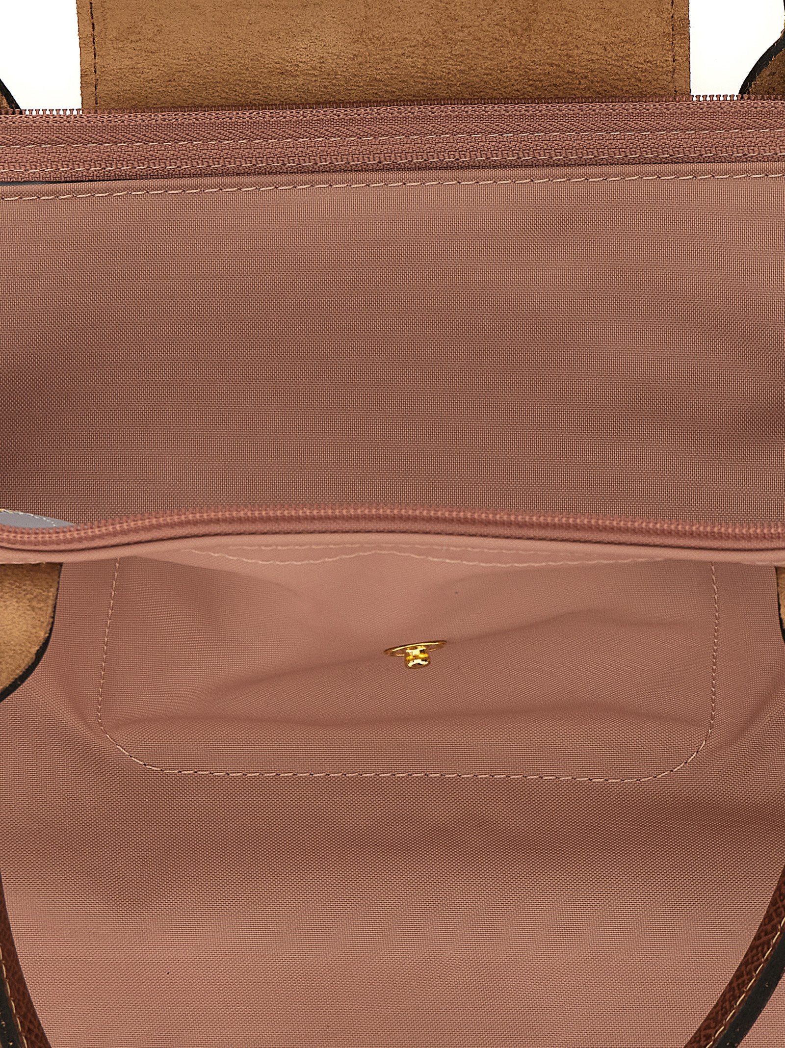 ‘M Le Pliage Original’ foldable nylon canvas handbag, top zip closure, double fixed leather handle, leather flap with button closure and embossed logo.