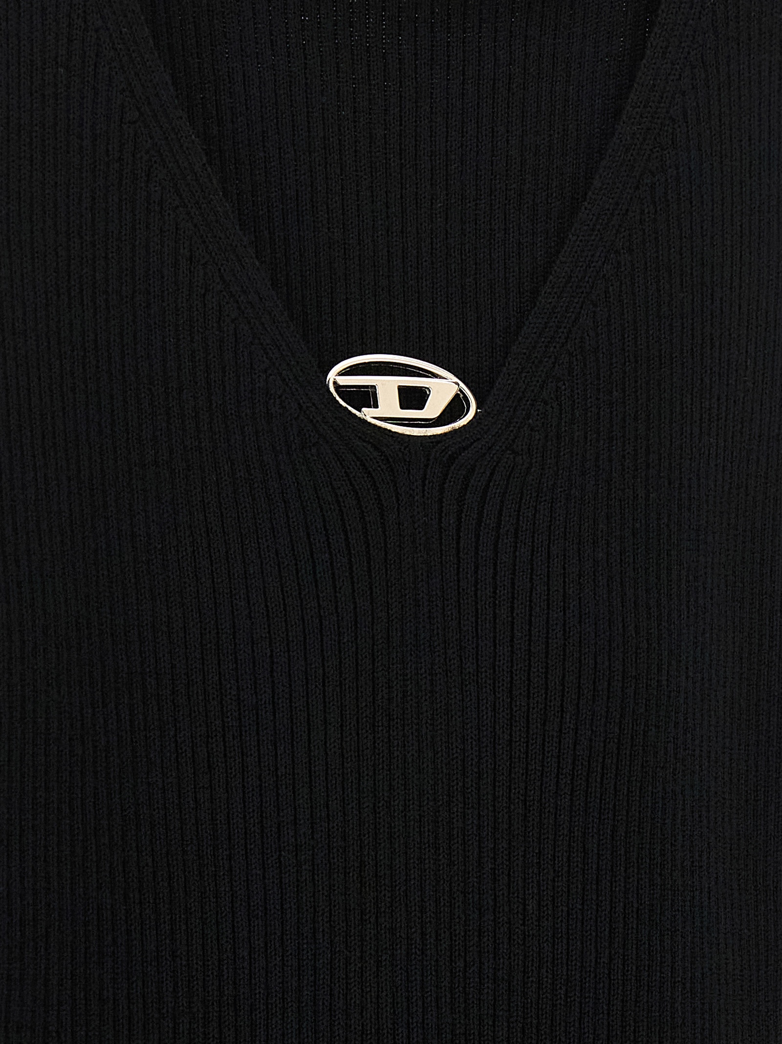 ‘M-Oloni short’ dress in ribbed knit wool, crew neck, front cut-out detail with metal Oval-D application, sleeveless.