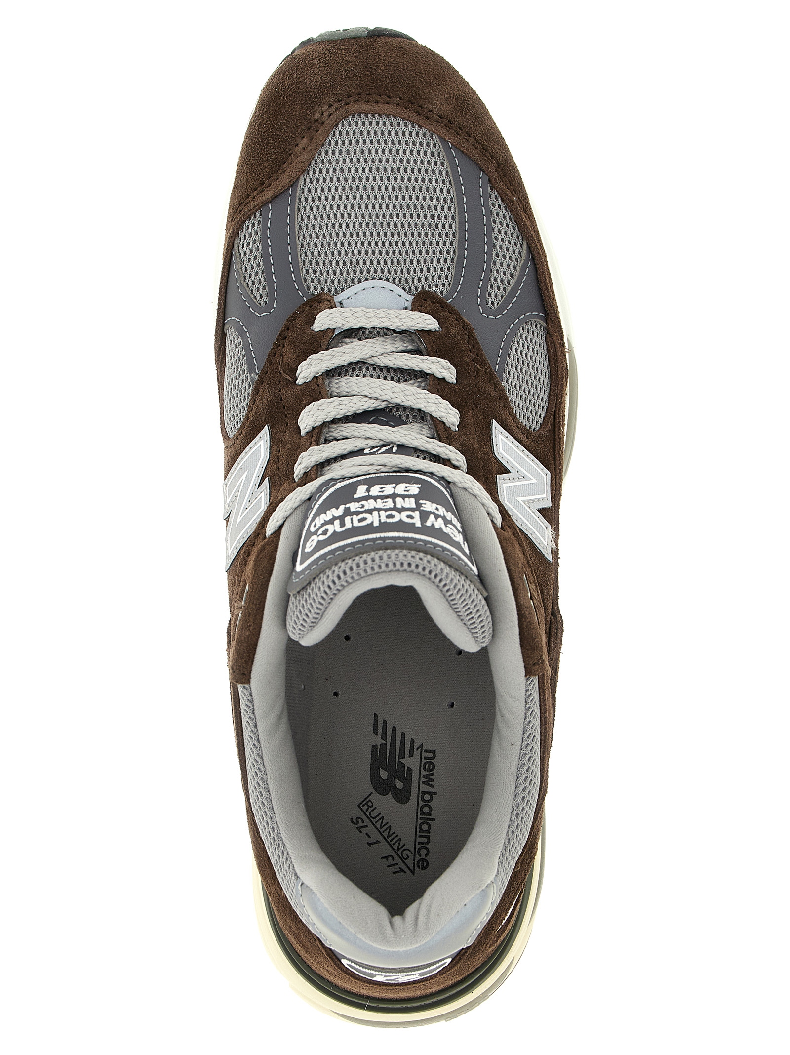 ‘Made in UK 991V2’ sneakers in suede and mesh fabric with lace-up closure, rubber sole.