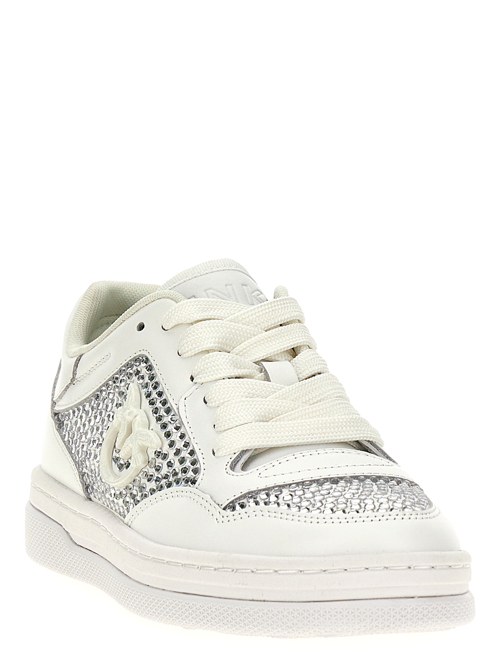 ‘Mandy 09’ leather sneakers with rhinestone appliqué, lace-up closure, embossed logo on the tongue, rubber sole.