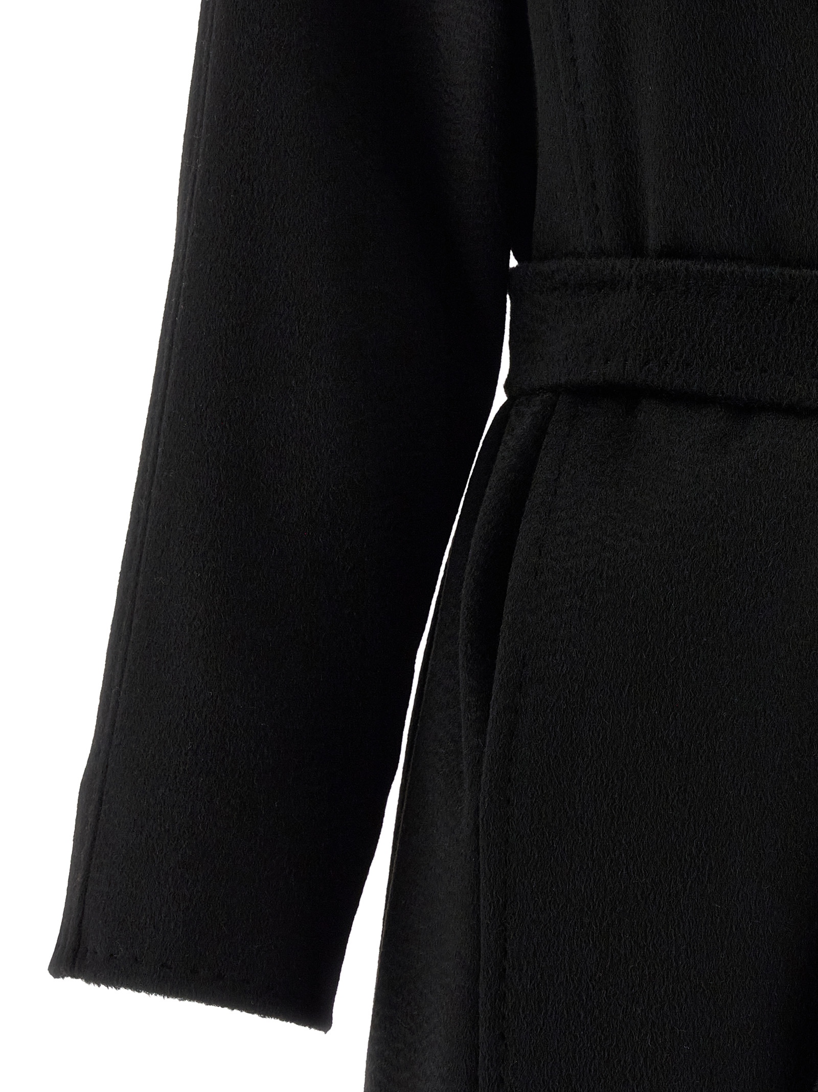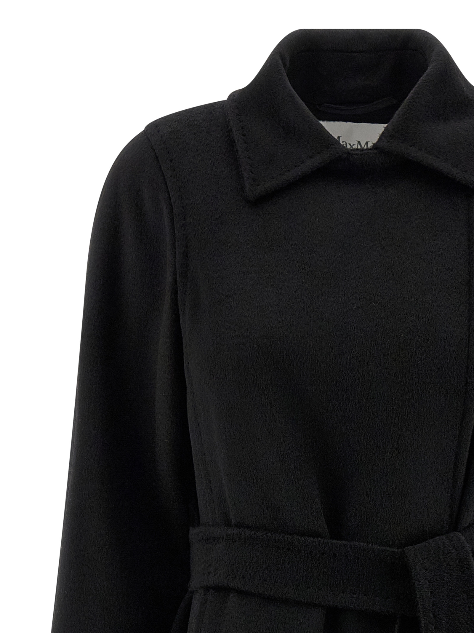 ‘Manuela Icon Coat’ pure sable camel drap coat finished with tailored dot, robe style, wide lapel collar with a dual-use button, pockets, long kimono sleeves, back split, removable belt, monogram viscose lining.