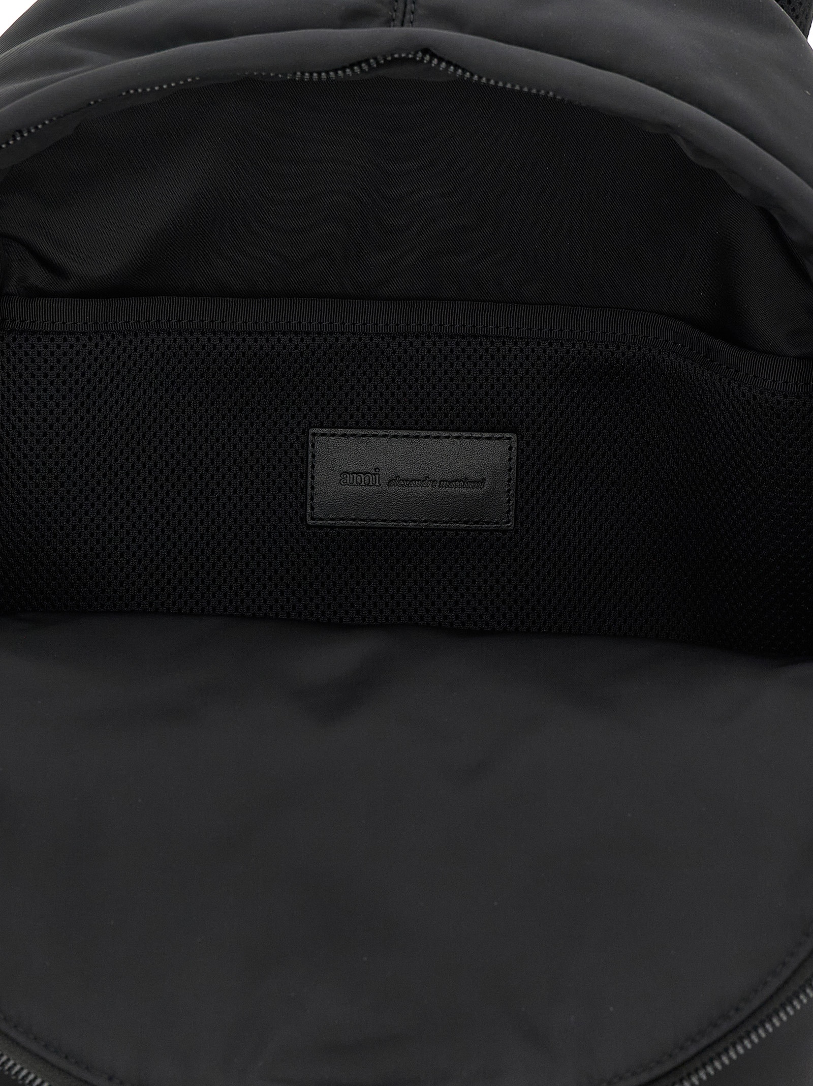 ‘Marcel’ backpack in lightly padded nylon canvas, zip closure, front pocket with ‘ADC’ leather logo detail, side pockets and inner partition, satin silver metal trim, leather bottom details, adjustable and padded shoulder straps.