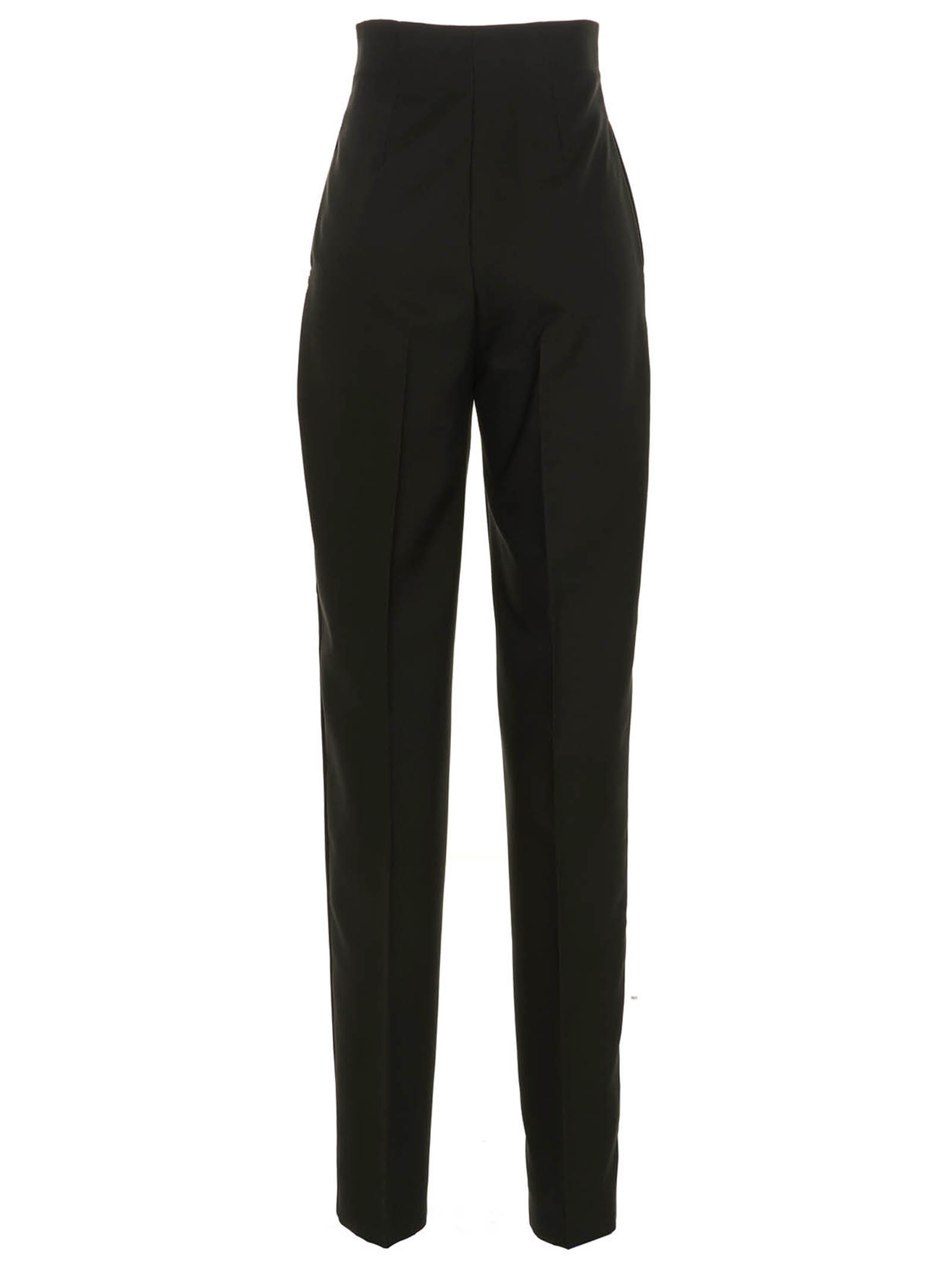 Marche’ pants with zip, hook-and-eye and button closure, central pleat on the gama and pockets.