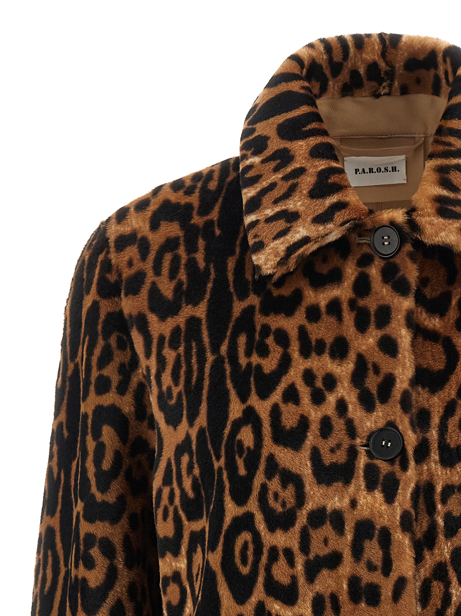 Marianne’ animal print fur coat with shirt collar, front button closure, pockets, long sleeves, unlined.