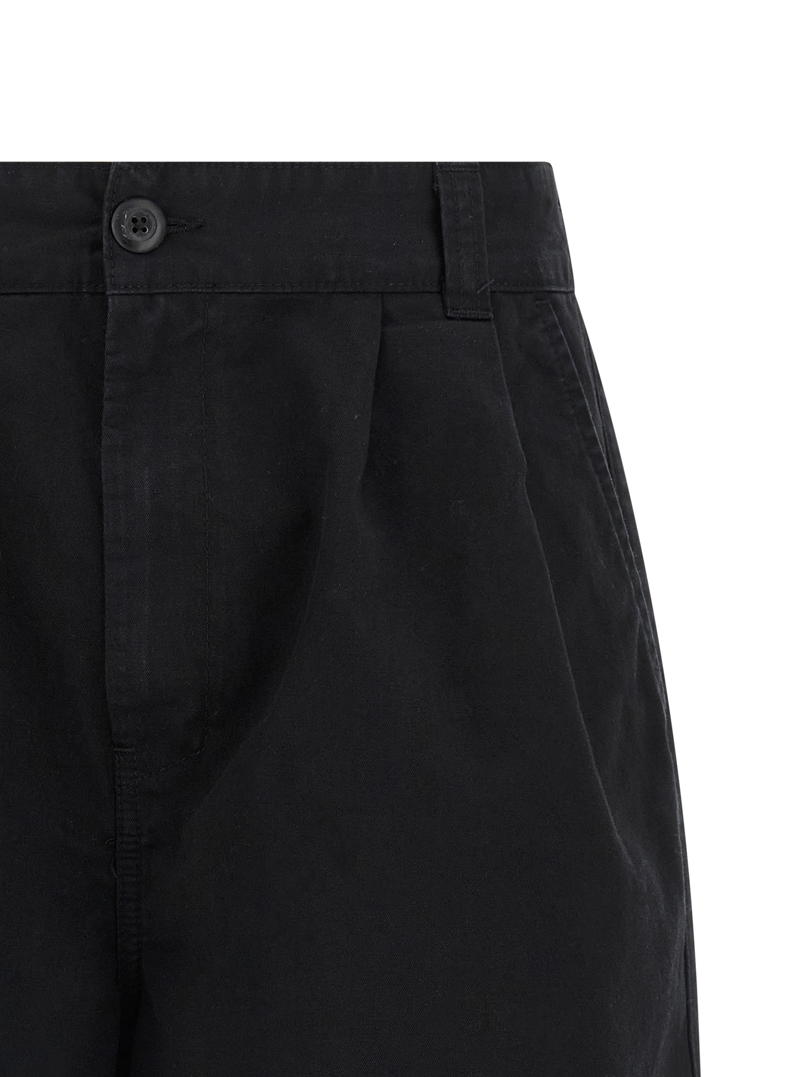 ‘Marv’ bermuda shorts in Lenexa medium weight cotton twill with front pleats, wide leg, mid waist with back elastic, front zip and button closure, pockets, back logo patch.