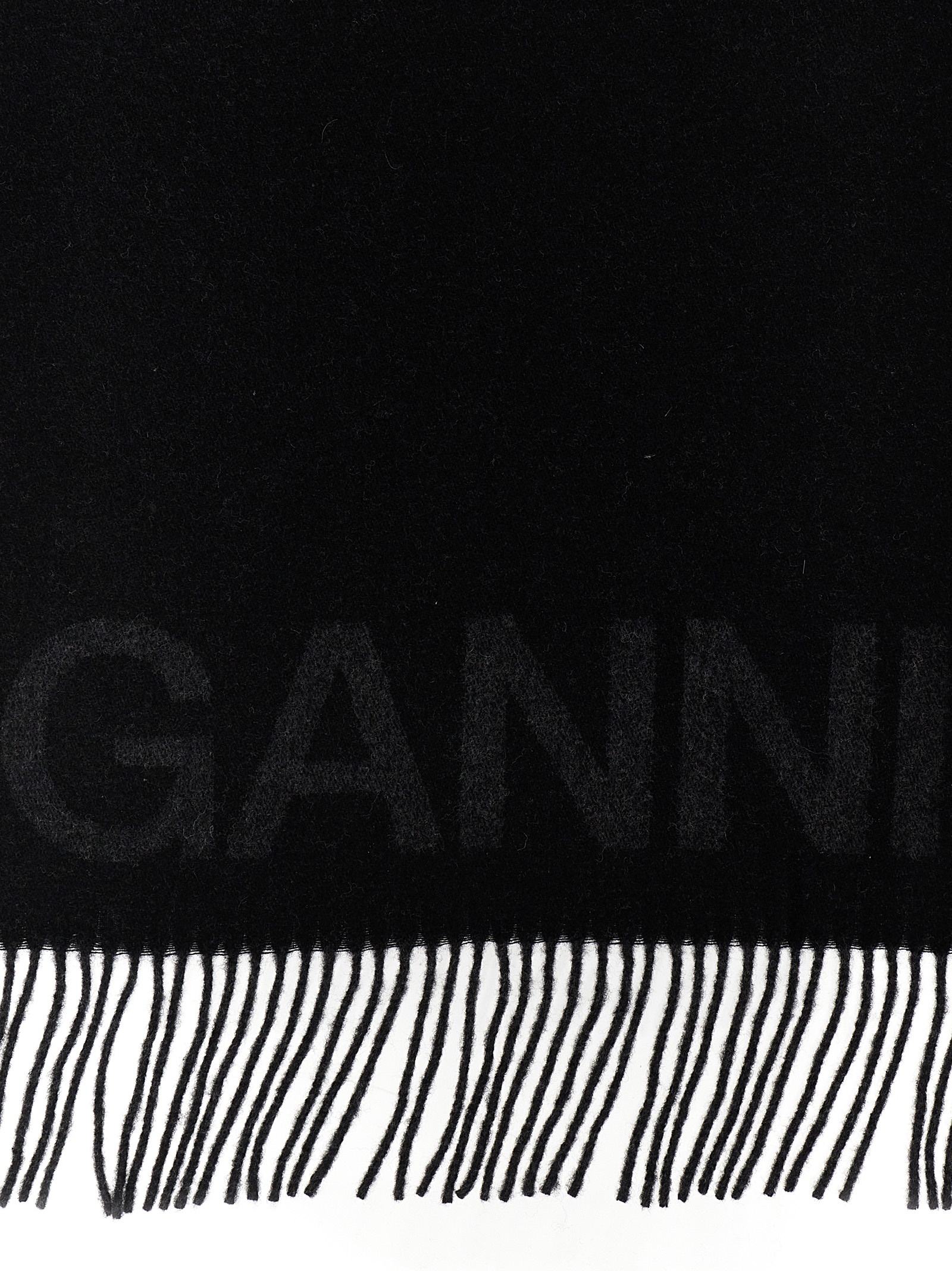 Wool scarf with logo and fringed edging.