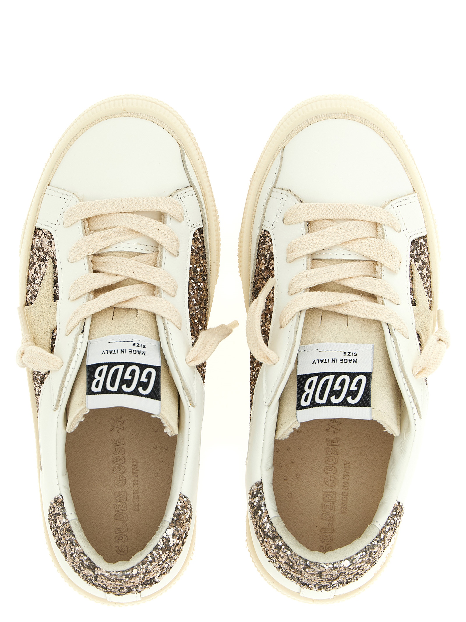 ‘May’ leather sneakers with glitter insert, lace-up closure, suede tongue and side star, rubber sole.