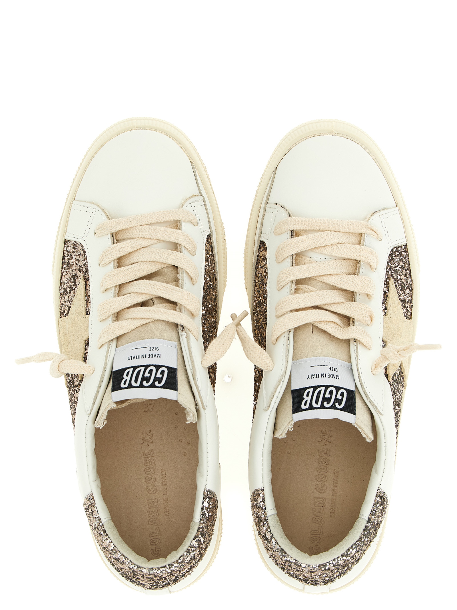 ‘May’ leather sneakers with glitter insert, lace-up closure, suede tongue and side star, rubber sole.