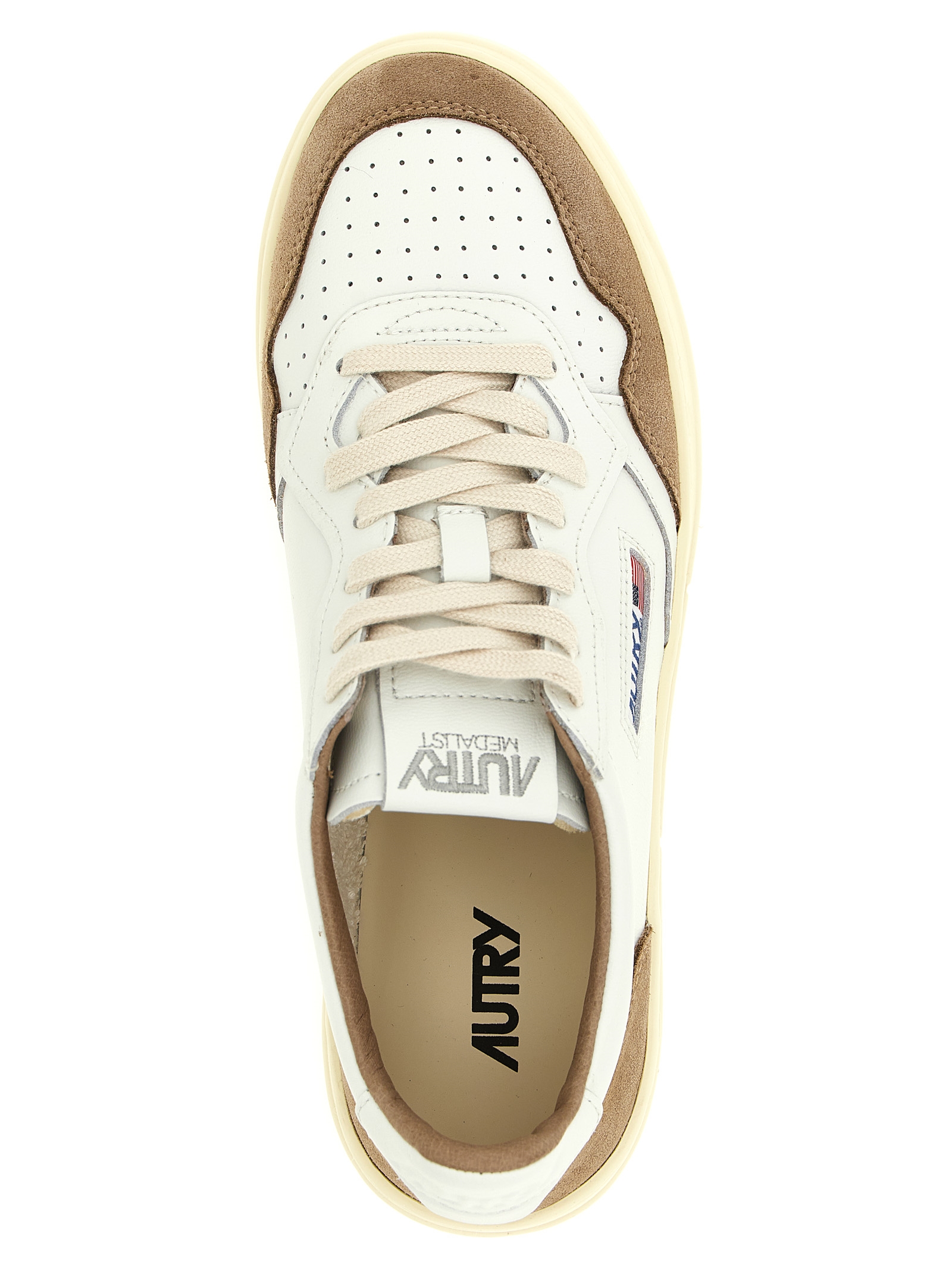 ‘Medalist Low’ goat leather sneakers with contrast suede details, micro-hole toe, padded collar, leather, terry and nylon lining, lace-up closure, leather insole raised by 2 cm, rubber sole.