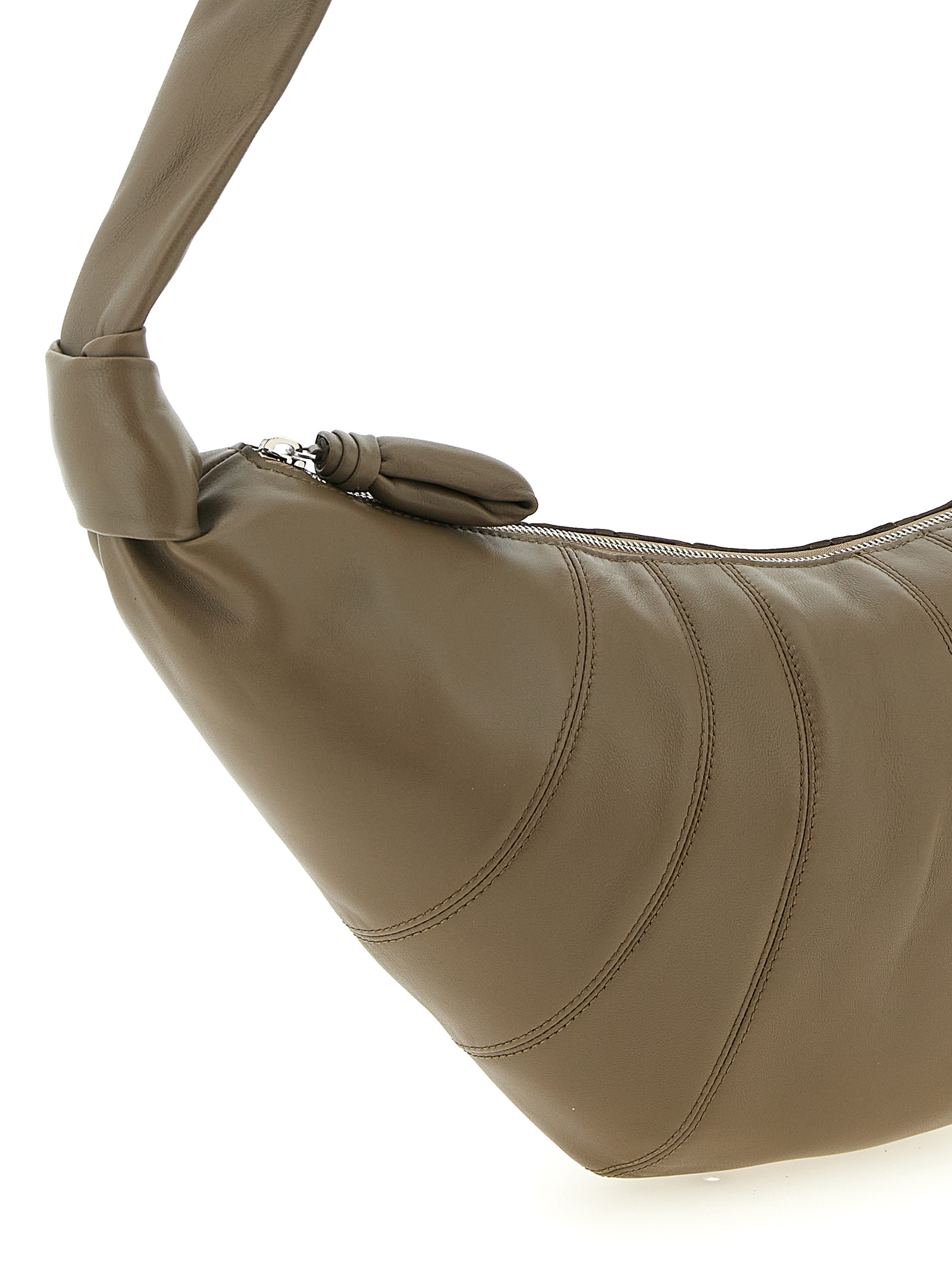 ‘Medium Croissant’ shoulder bag in soft nappa leather, assembly construction of visible stitched cut-outs, top zip closure, handle with side knots.