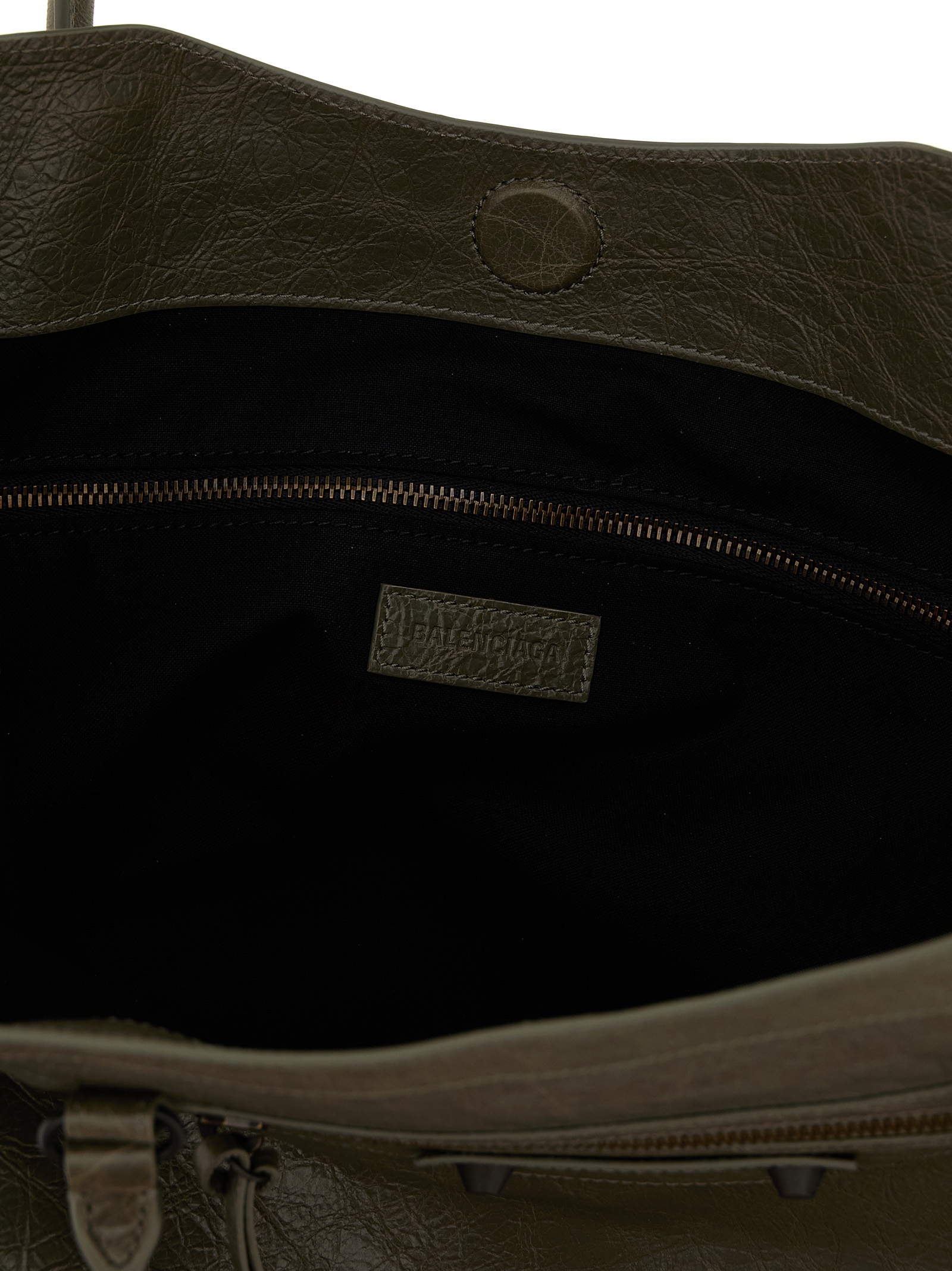 Arena Storico ‘Le City’ lambskin midi shopping, double fixed handle, magnetic closure, brass finish studs and front zip pocket.