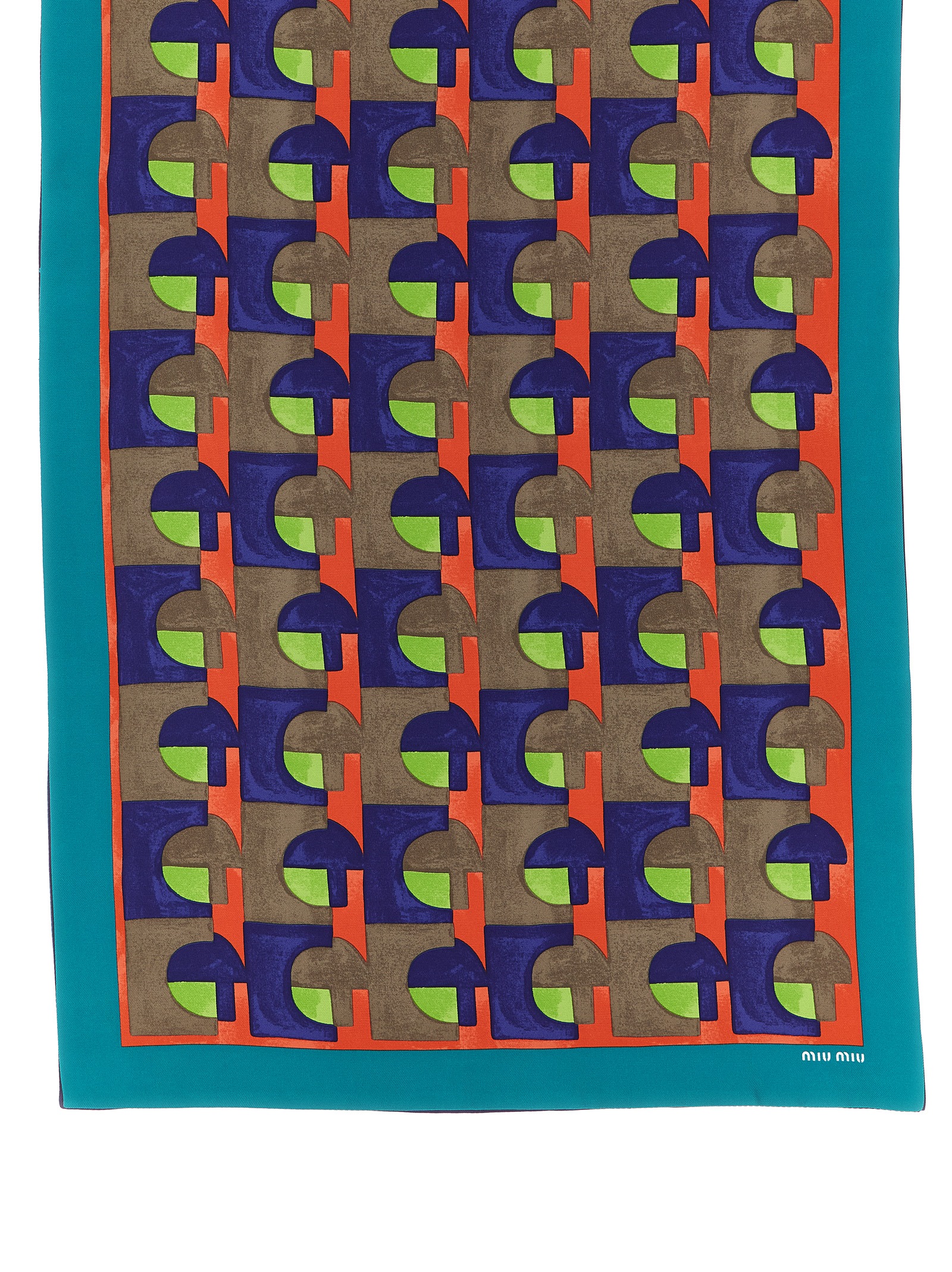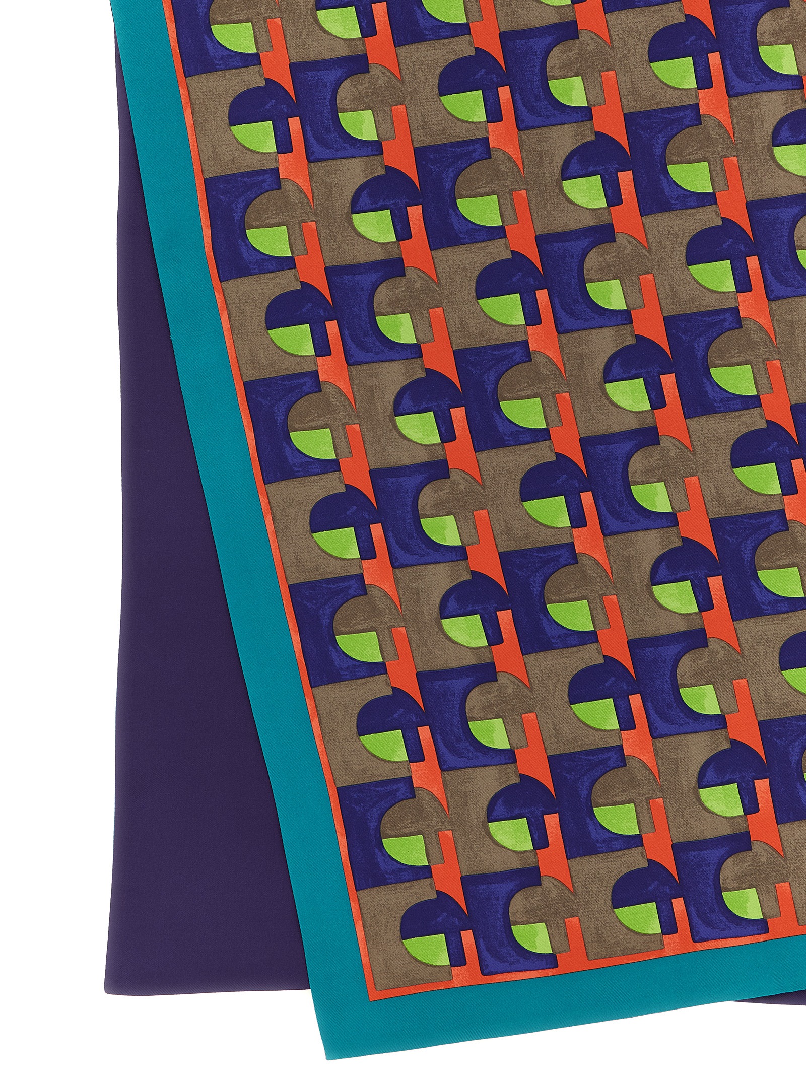 Medium scarf in silk twill with geometric patterns and solid color print.