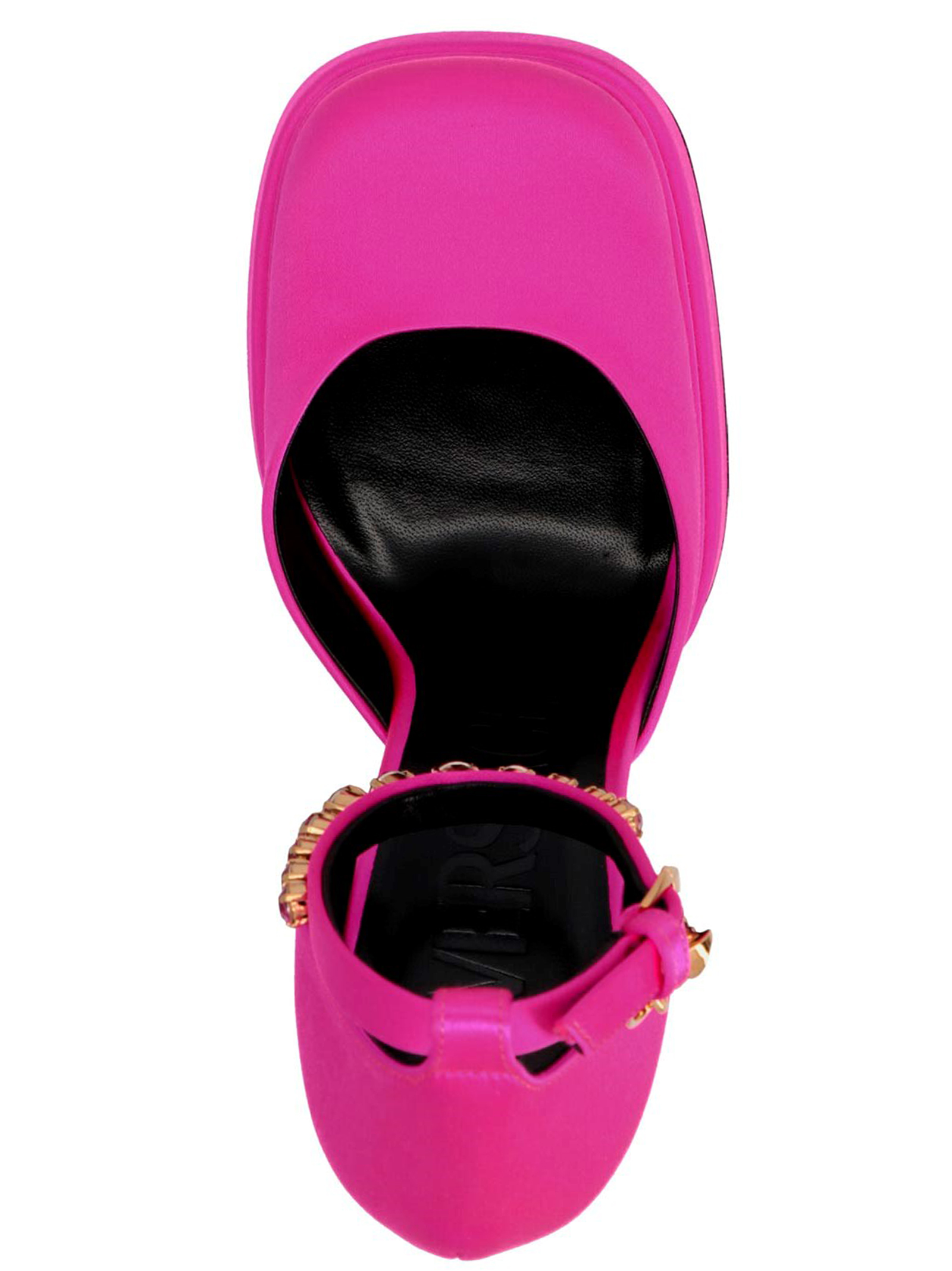 Medusa ‘Medusa aevitas’ satin pumps featuring a strap embellished with sequins and a Medusa charm.