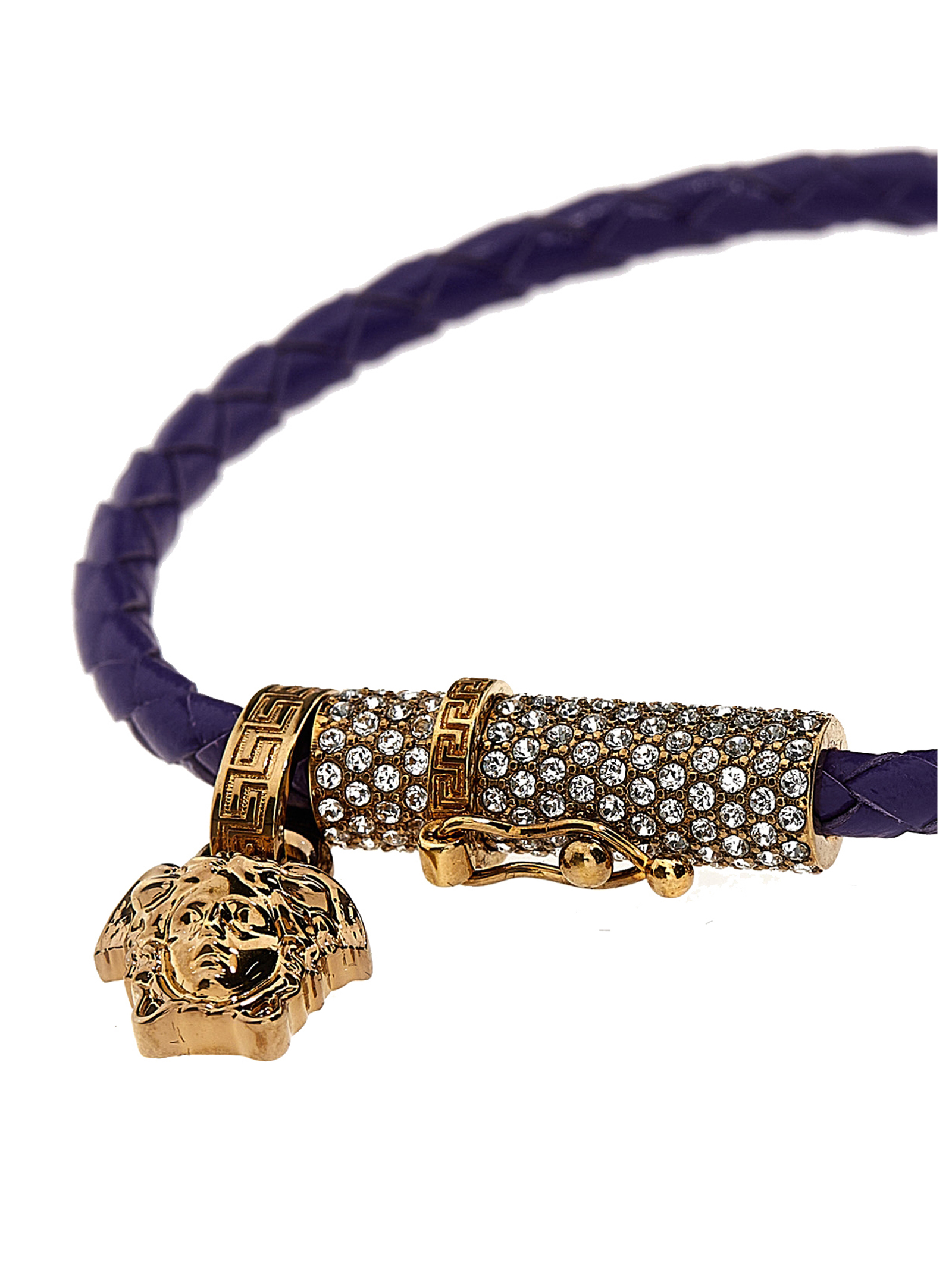 Medusa’ braided leather bracelet with Medusa pendant and a closure embellished with crystals.