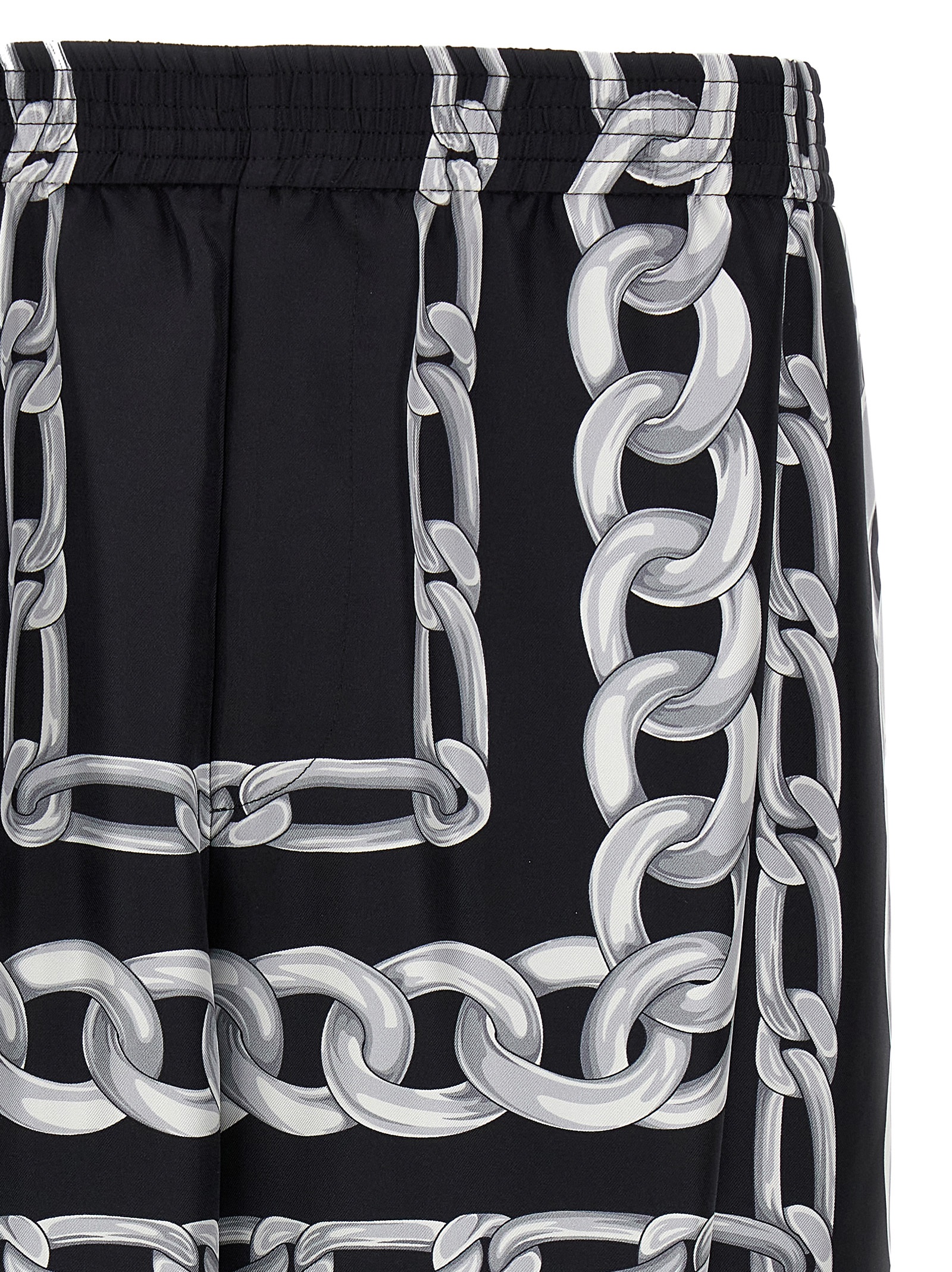 Bermuda shorts in silk twill with ‘Medusa Chains’ print, elastic waistband, pockets, wide leg.