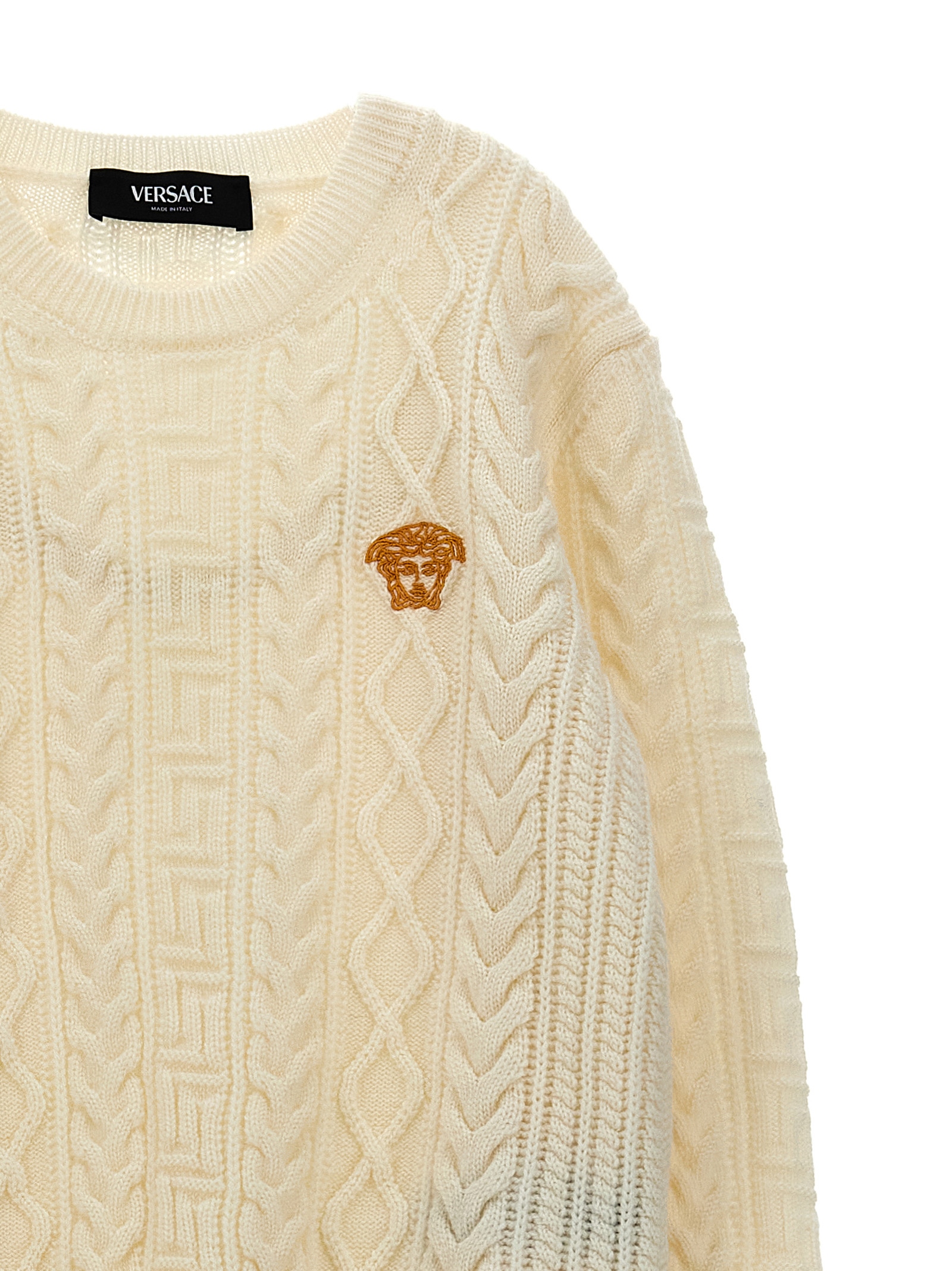 Wool sweater with front ‘Medusa’ embroidered logo, crew neck and long sleeves.