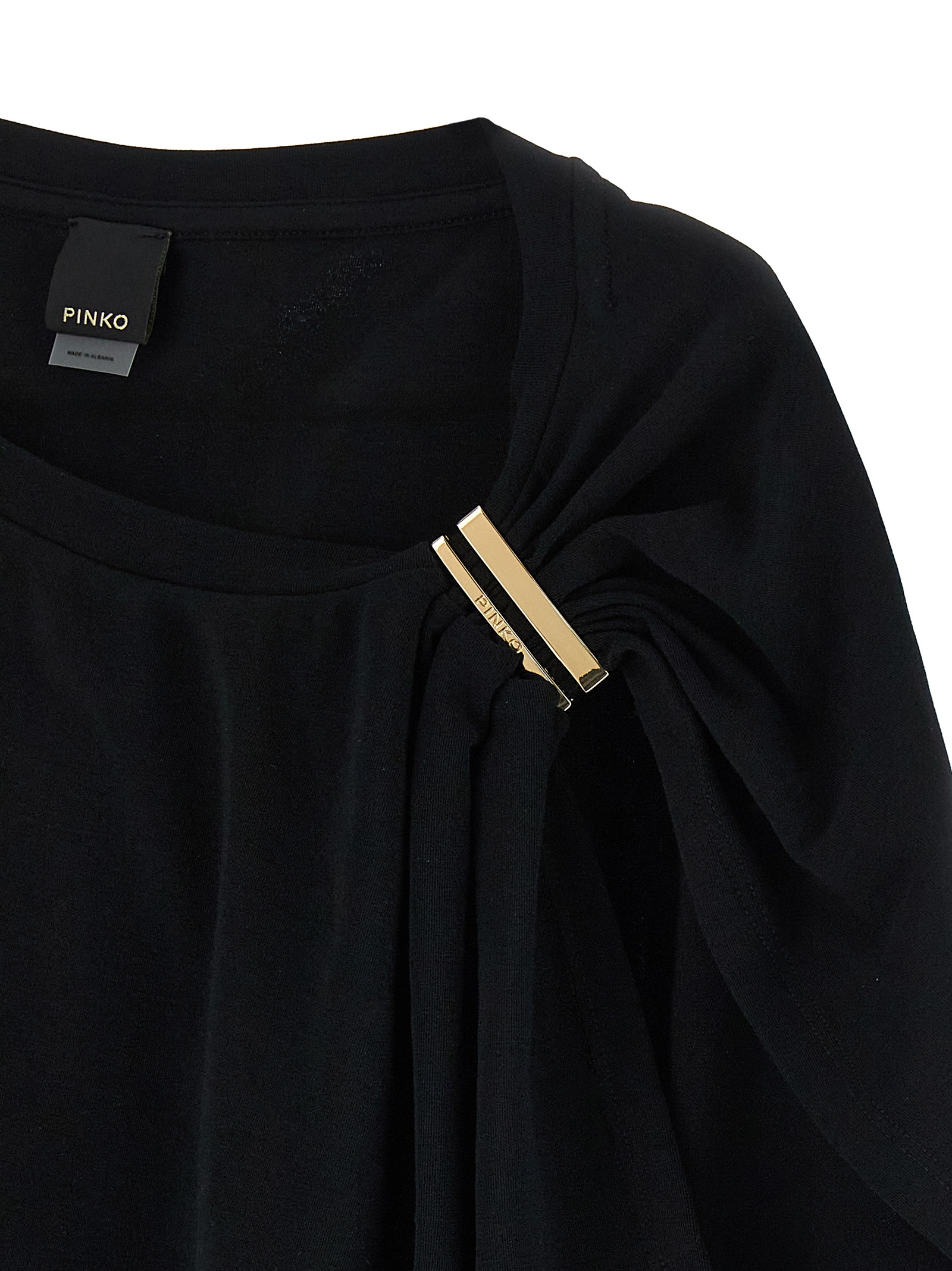 ‘Melody’ sleeveless stretch jersey top with gold metal details and engraved logo.