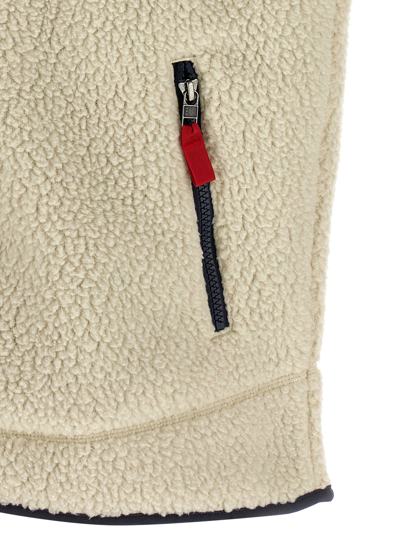 ‘Men’s Retro Pile’ vest in extra-soft fleece brushed on both sides with contrast piping, flat seams, high neck, logo patch and front zip closure, pockets.