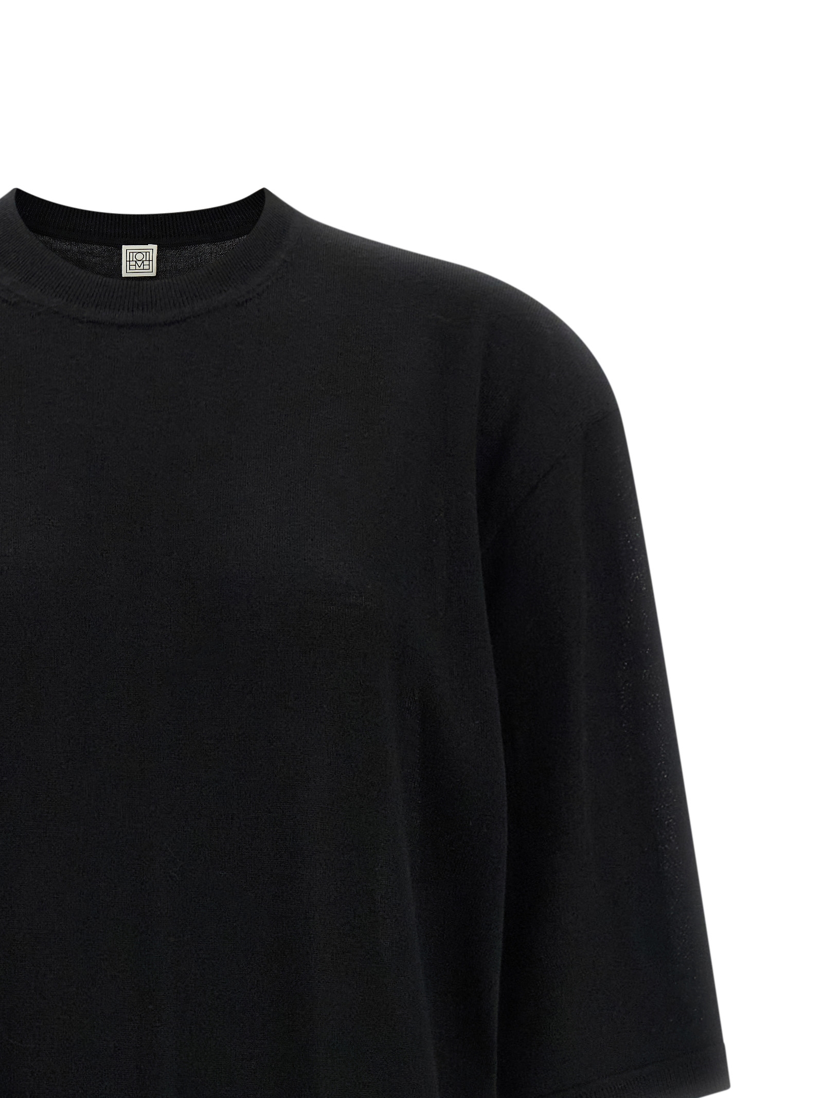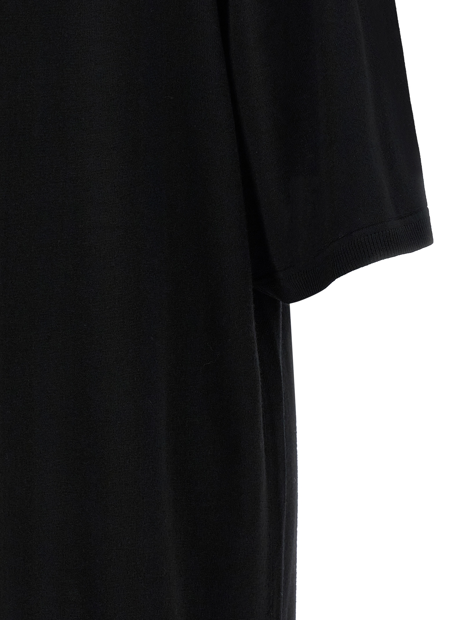 Long ‘Merino Knit Tee’ dress in fine merino wool, t-shirt model, crew neck, short sleeves with dropped shoulder, band on the hem.