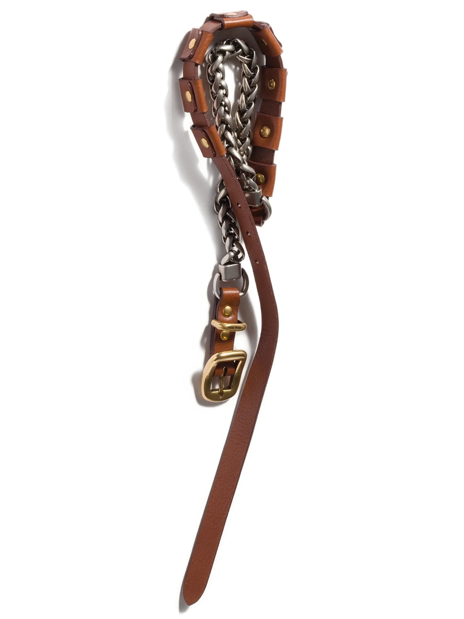 Necklace consisting of an antiqued effect chain metal part and leather with studs, buckle closure, adjustable.