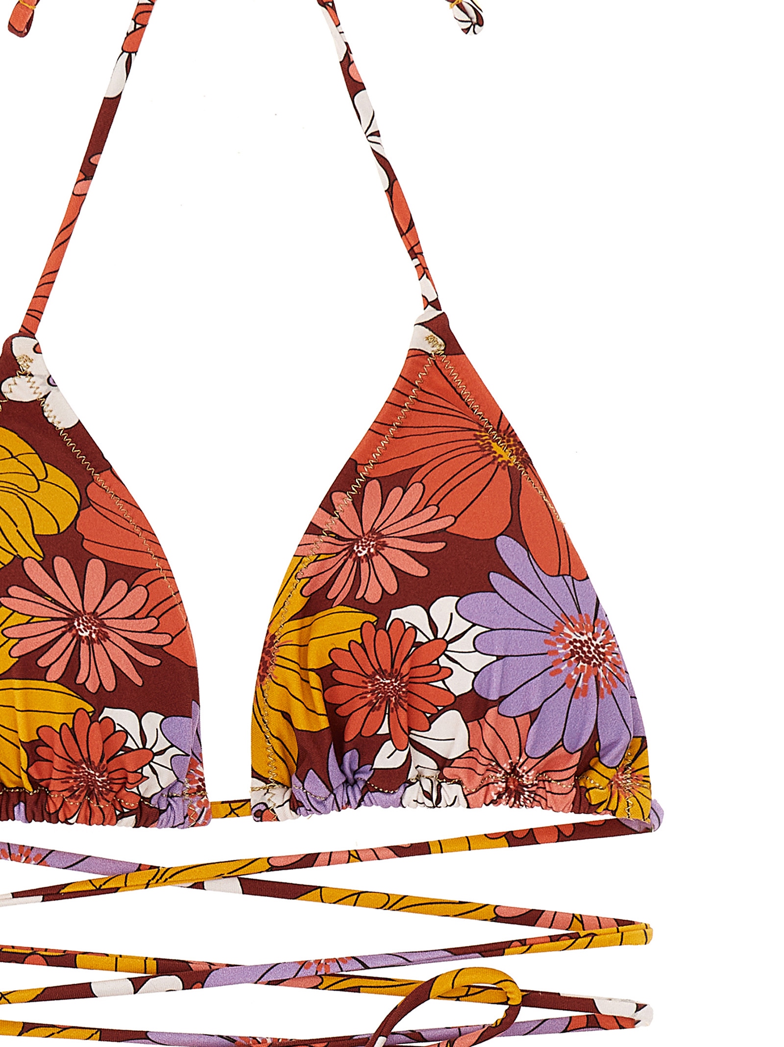 Miami’ floral print stretch bikini with triangle top with removable cup, lacing and leg bottoms with lacing.