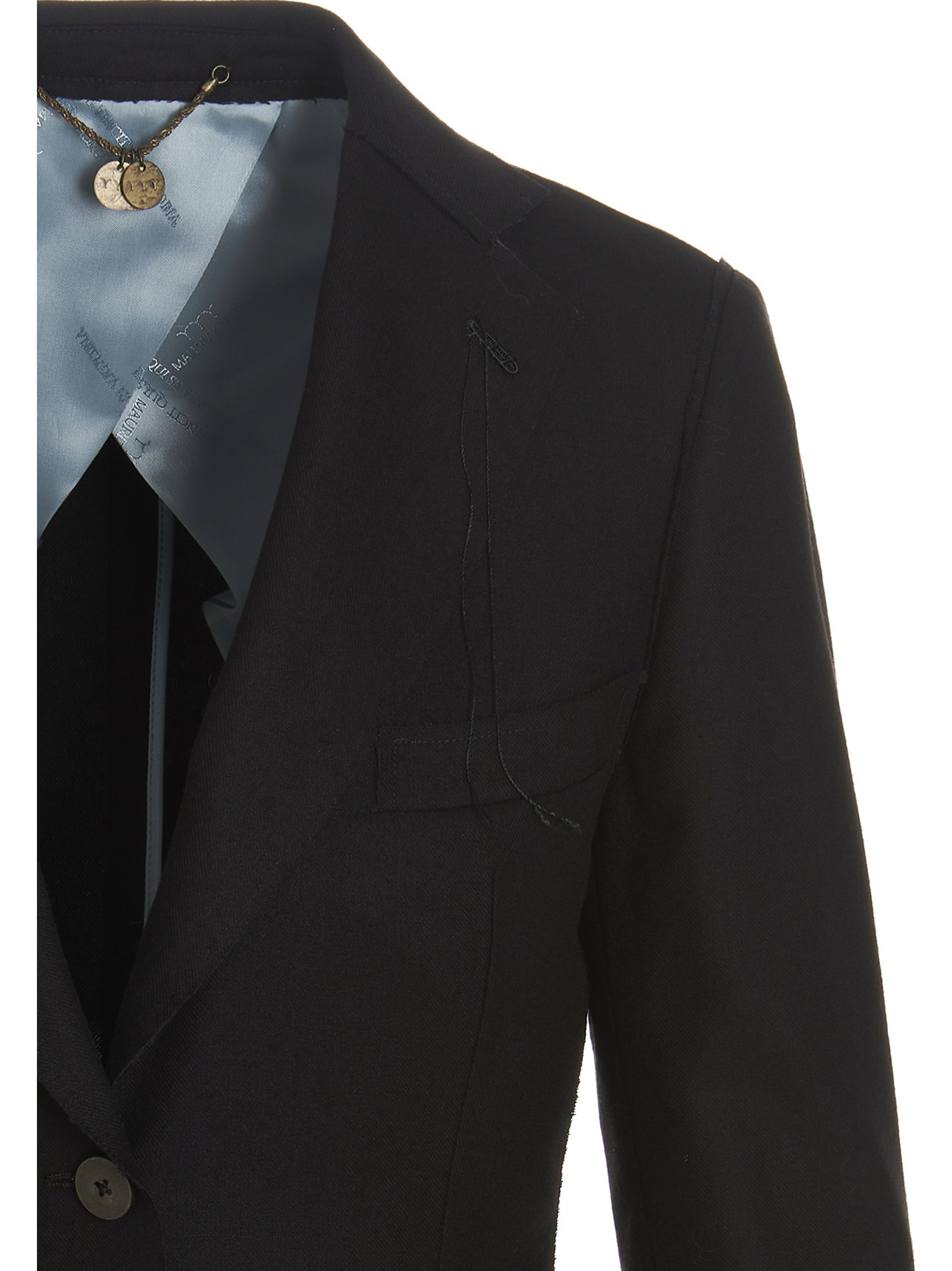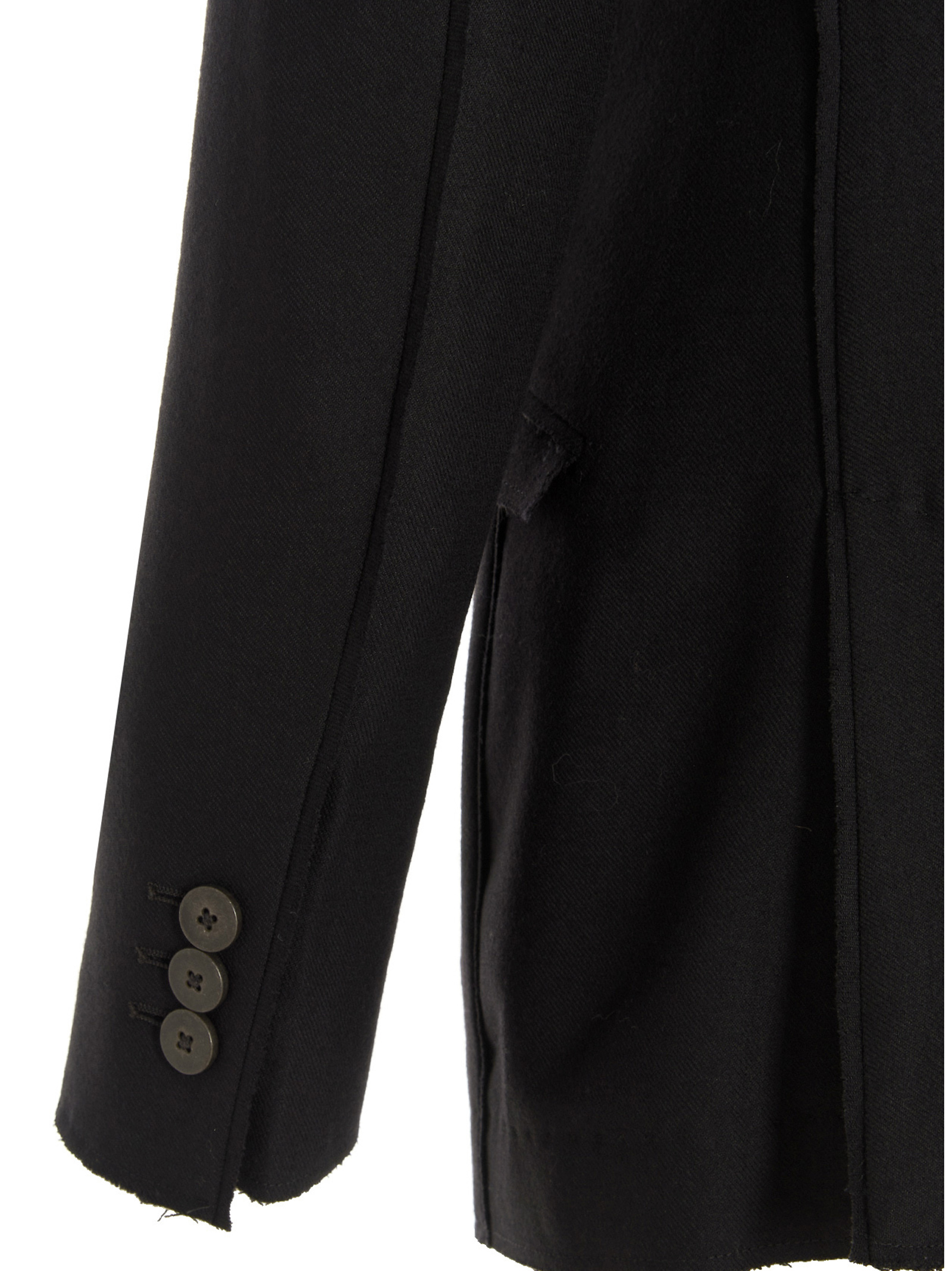 ‘Michelle’ single-breasted waisted wool blazer jacket with button closure, pockets, long sleeves and back split.