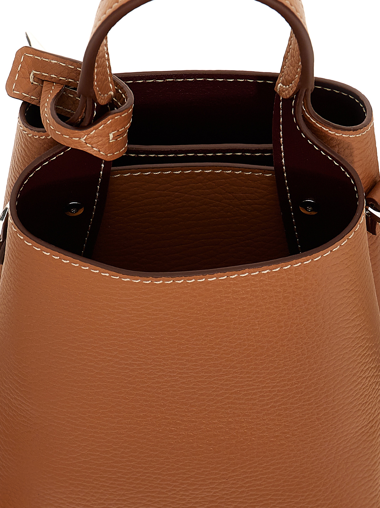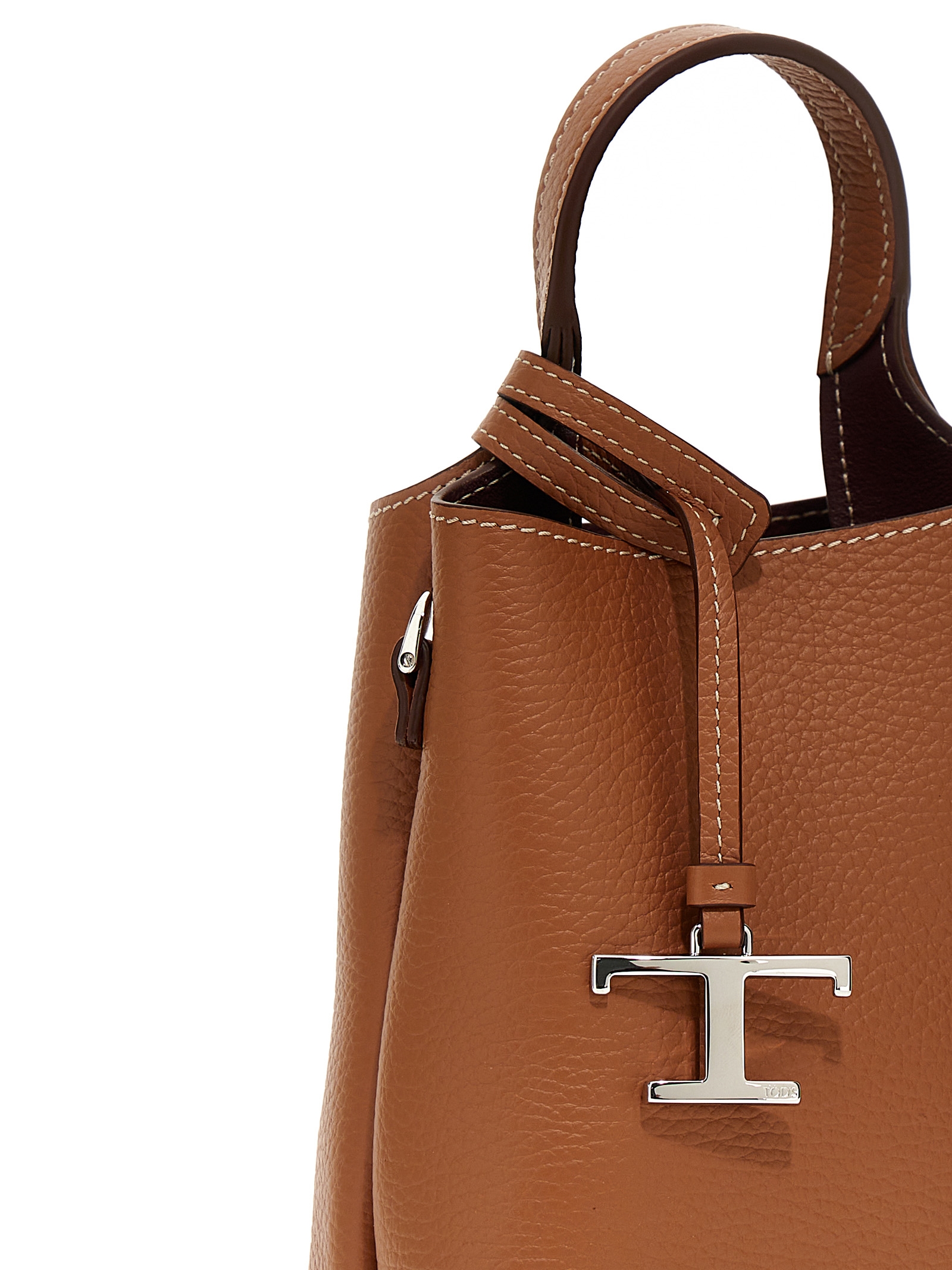 Micro Bag’ hammered leather handbag with front embossed logo, fixed handle, removable and adjustable shoulder strap, a removable pendant with T Timeless metal accessory, inner pocket and metal feet on the bottom hem.