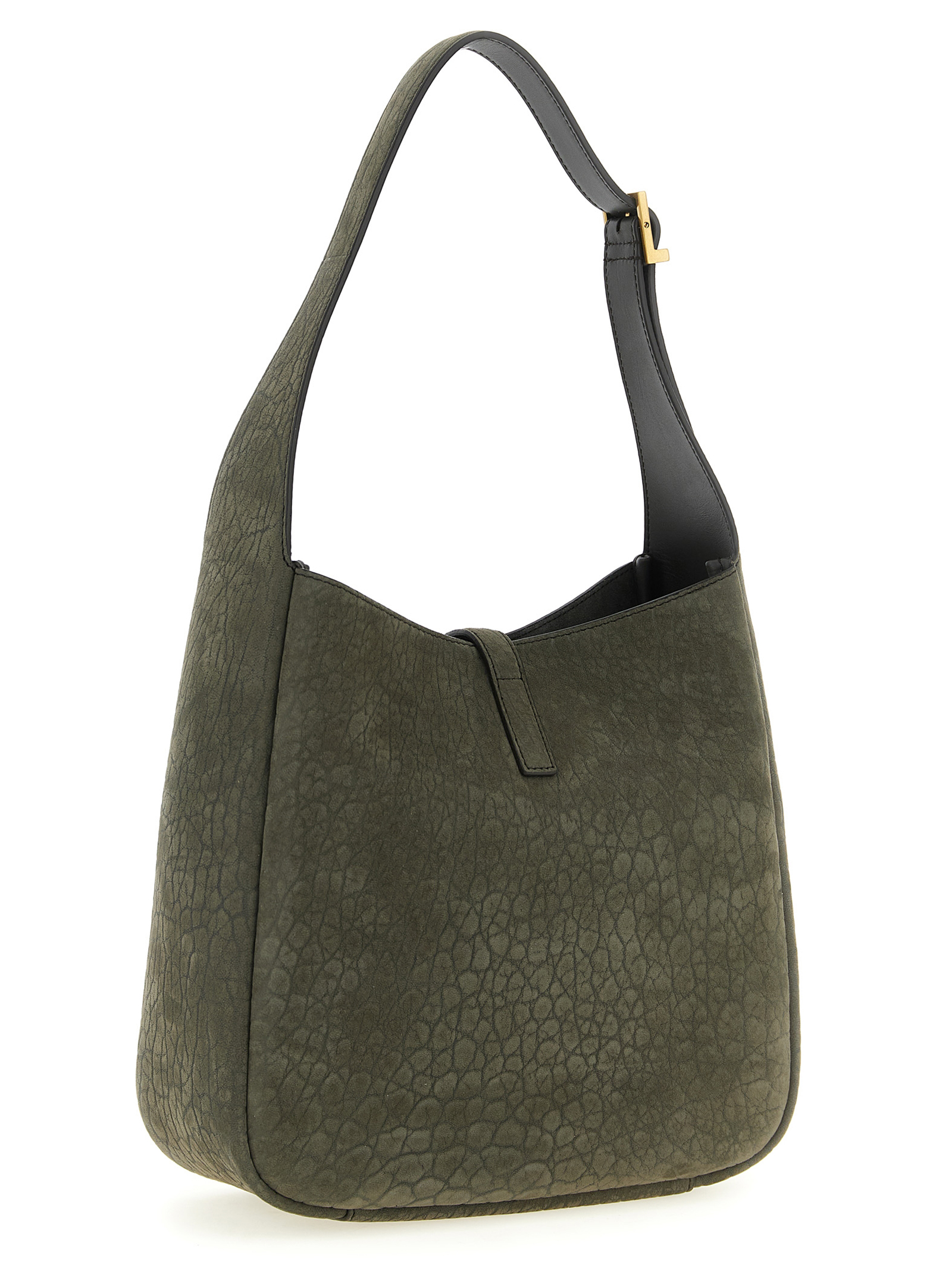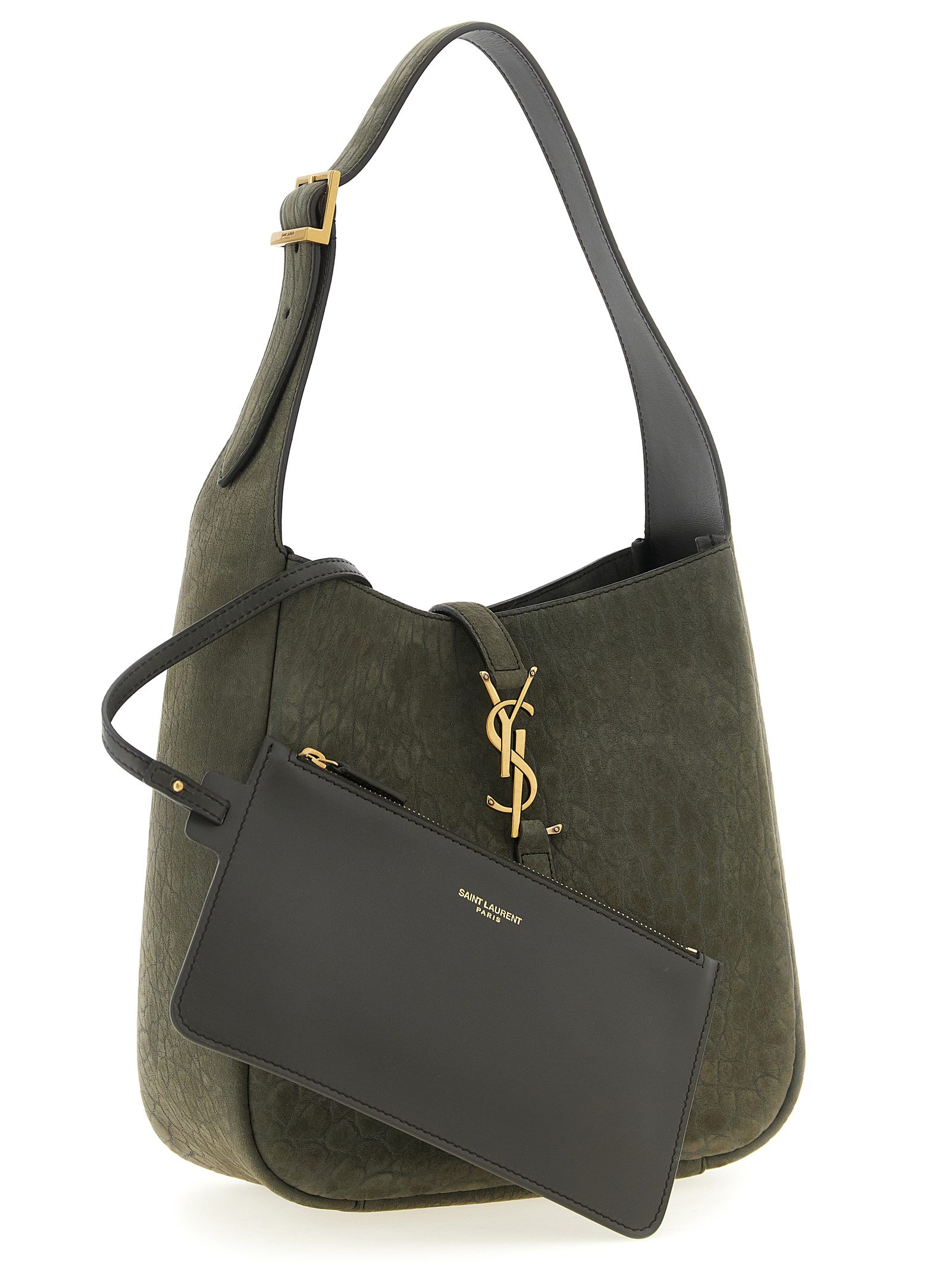 Micro ‘Le 5 à 7’ shoulder bag in hammered nubuck leather, suede lining, adjustable handle, closure with antiqued metal ‘Cassandre’ interlocking effect, removable clutch.