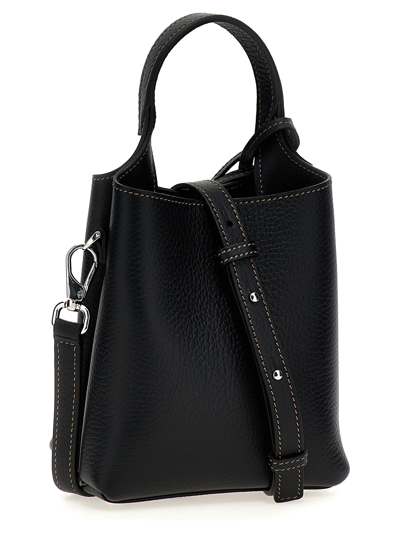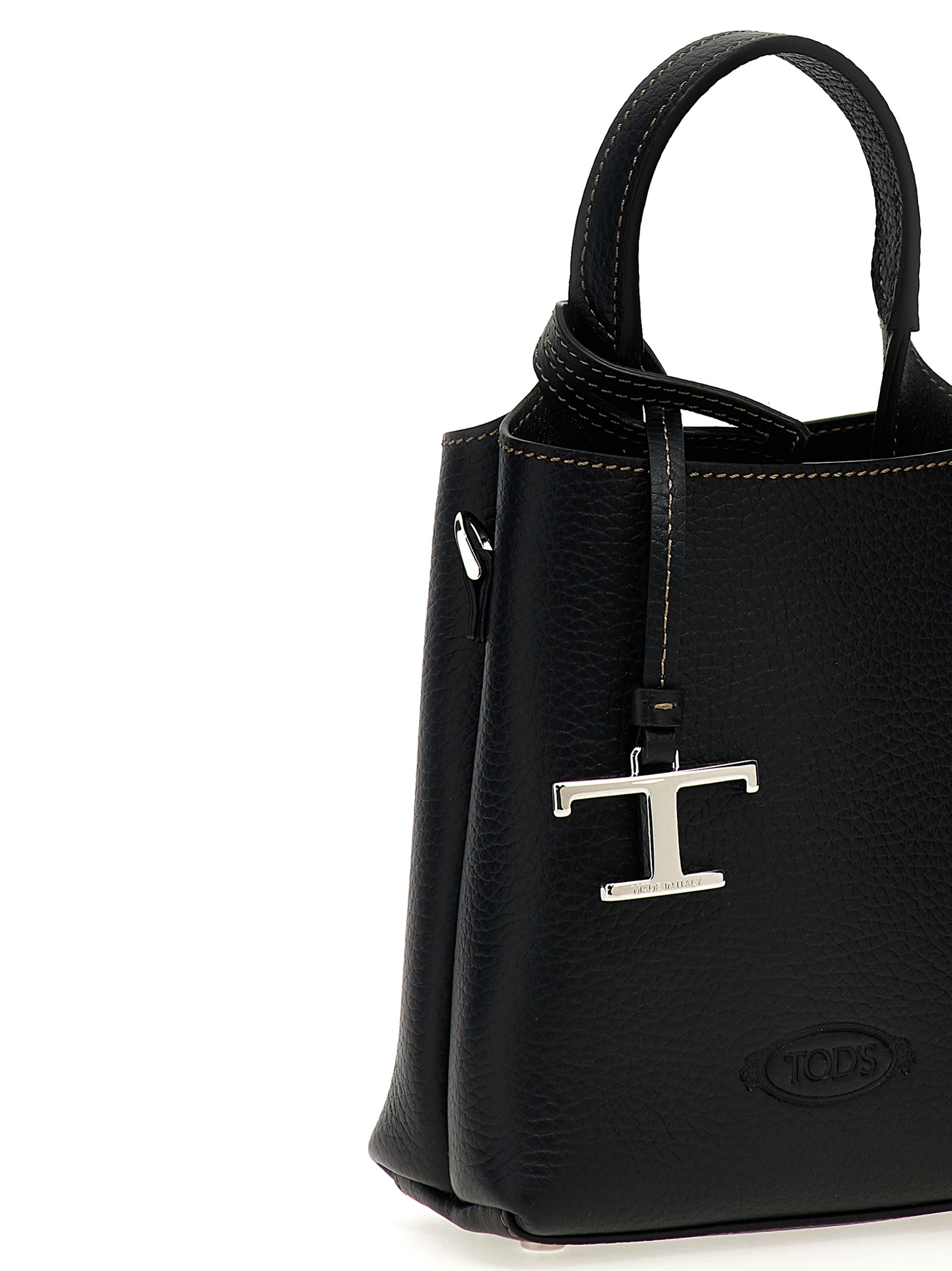 Micro Tod’s’ hammered leather handbag with embossed logo on the front, removable shoulder strap and a metal Timeless T pendant.