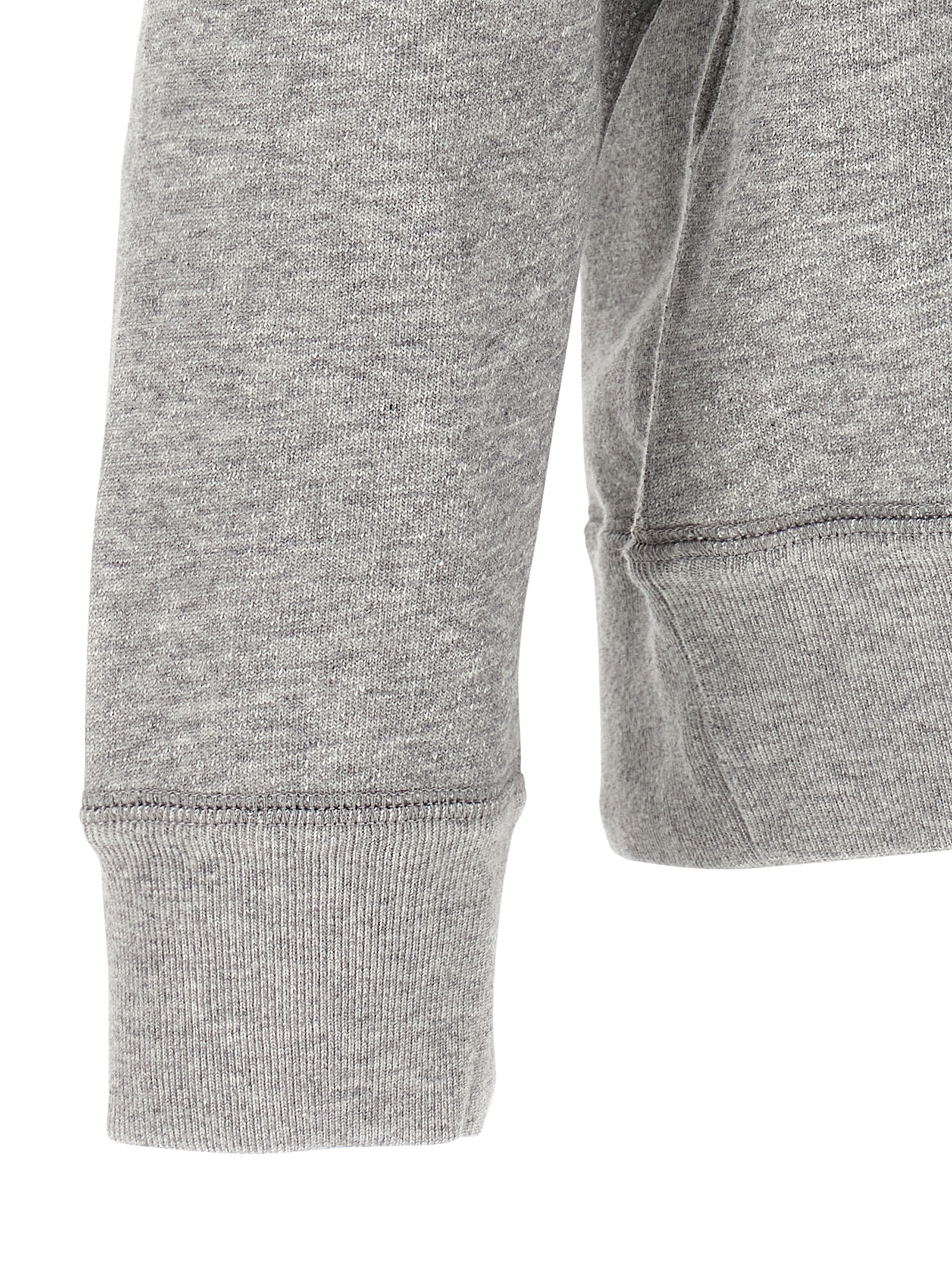 ‘Miley’ hoodie in melange brushed cotton, front velvet logo, kangaroo pocket, long cuffed sleeves.