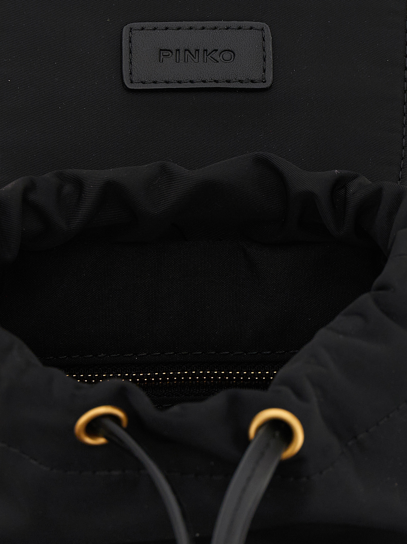 Nylon mini backpack, flap closure with leather-effect fabric strap with metal details and front ‘Love Birds Diamond Cut’ logo, inner drawstring, two front pockets, fixed top handle, adjustable ribbon shoulder straps, cotton drill lining.
