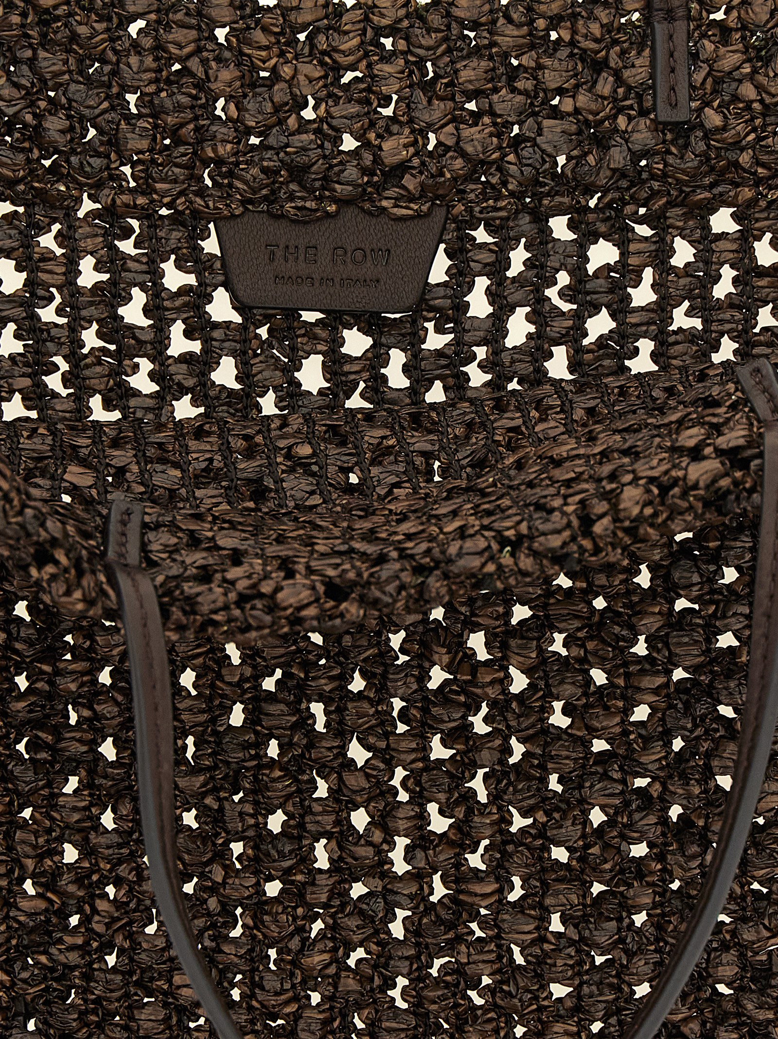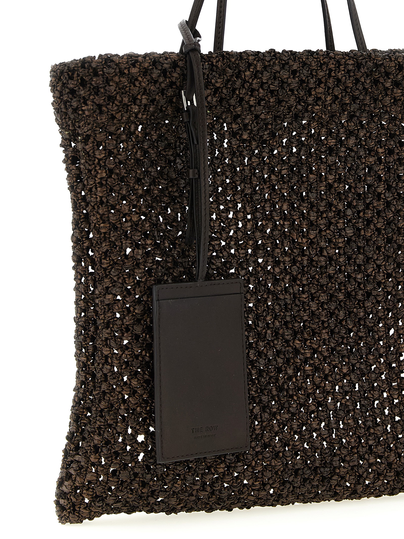 ‘Mini Barn’ natural raffia shopping bag with open crochet technique, double fixed leather handle, leather card holder tag with removable embossed logo.